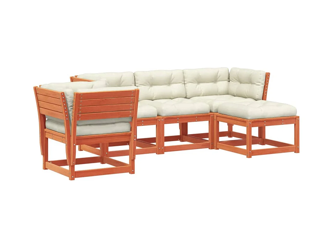 Set Salotto Giardino 7pz con Cuscini Marrone Cera Massello Pino