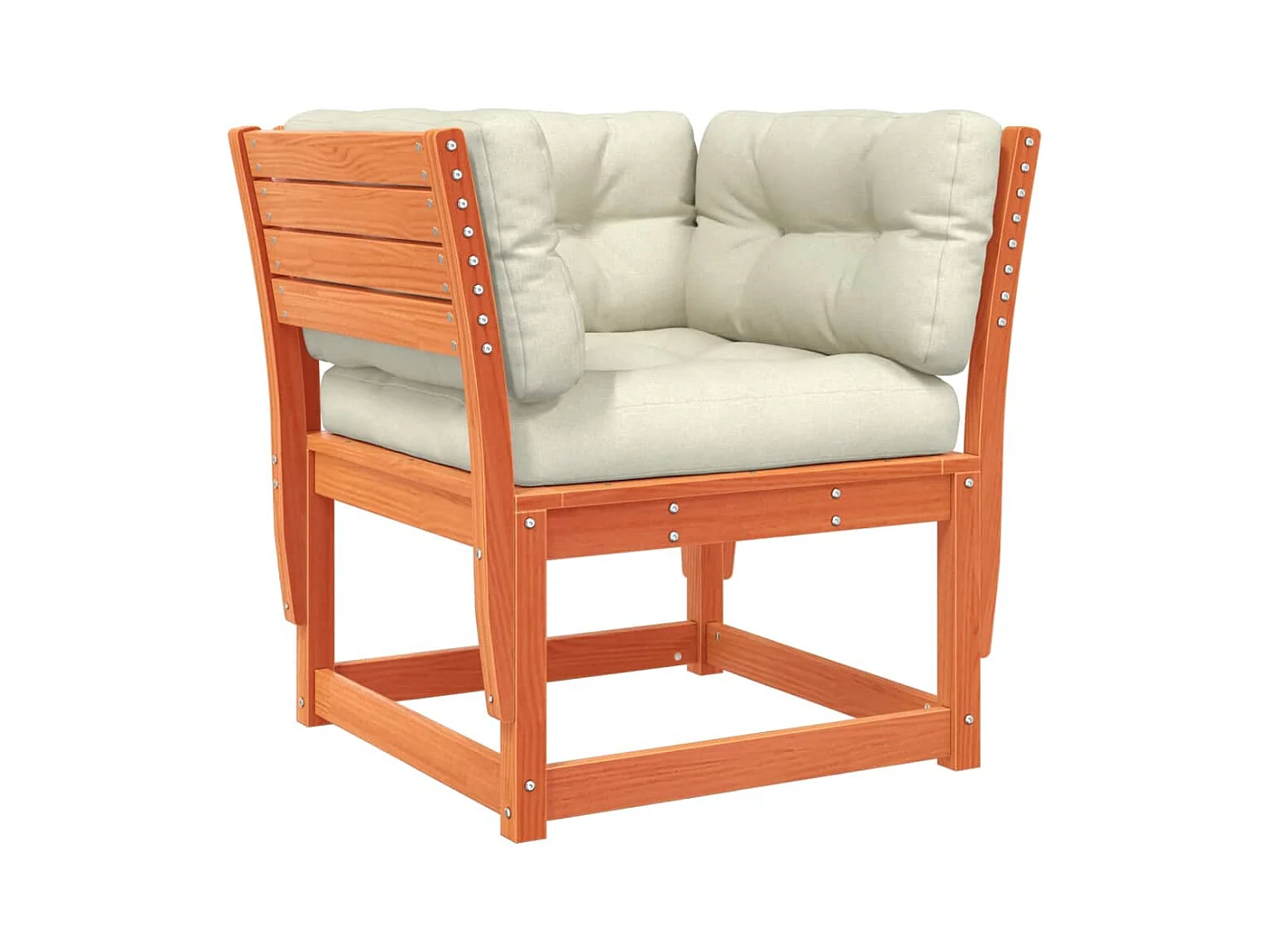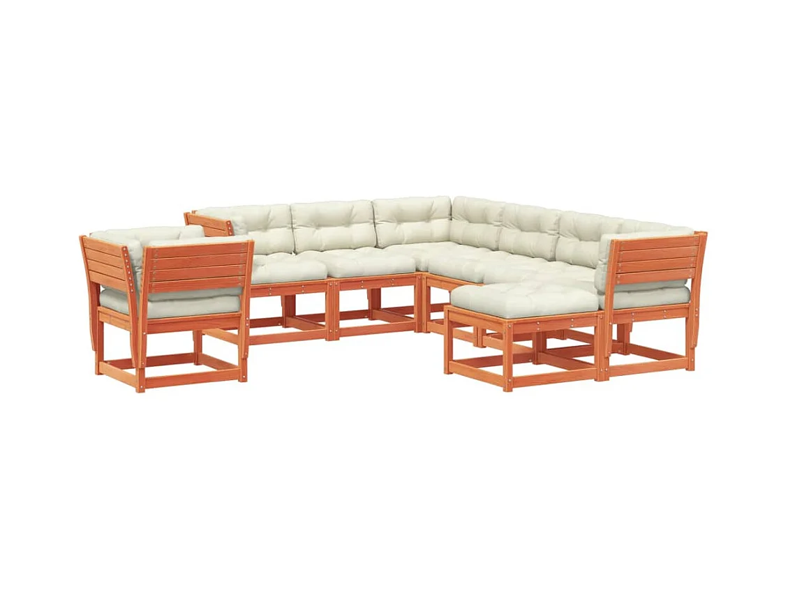 Set Salotto Giardino 8pz con Cuscini Marrone Cera Massello Pino