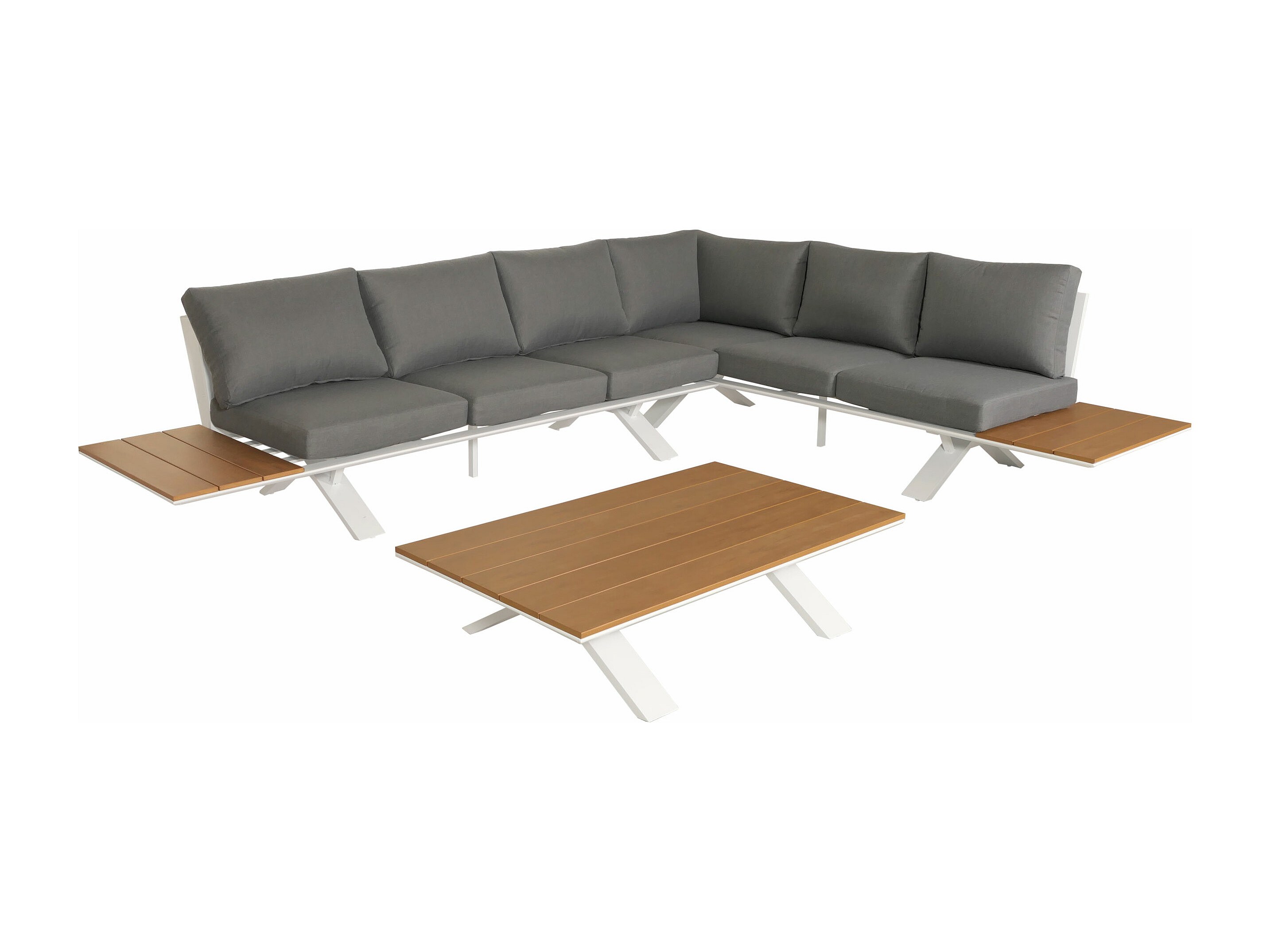 Set Divano da Giardino 5 pz ad Angolo Cuscini in Alluminio WPC