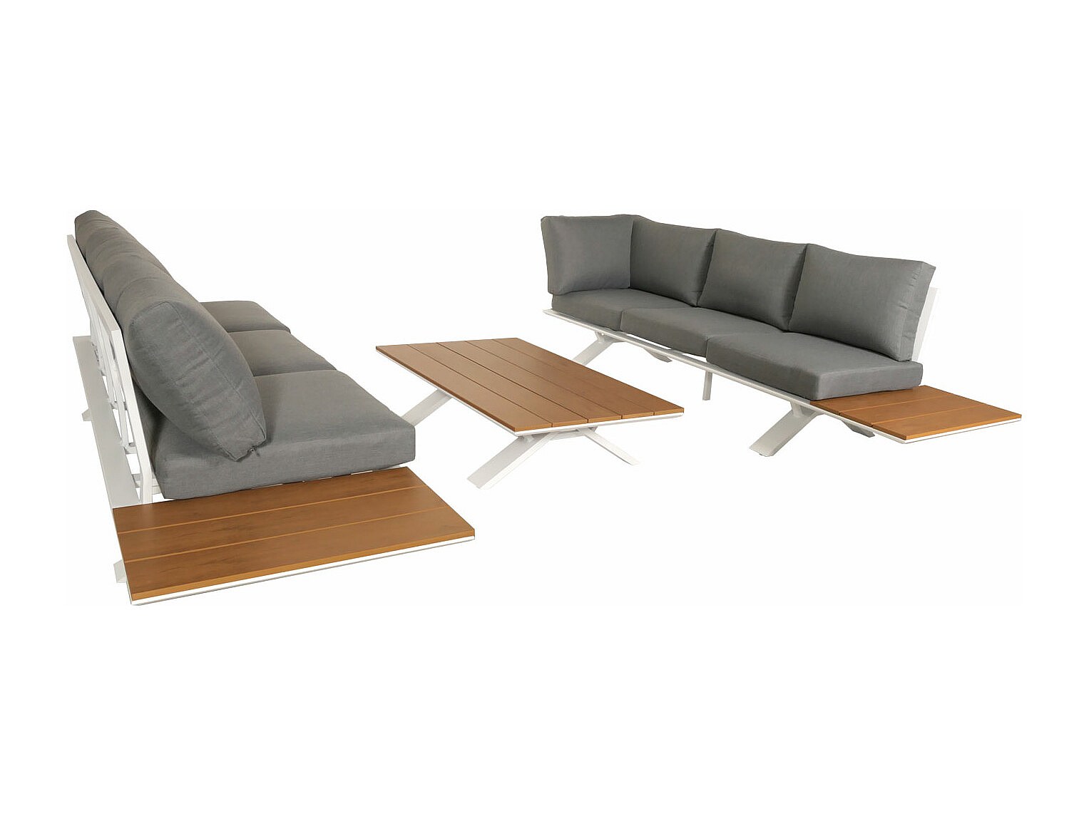 Set salotto giardino esterno salottino componibile MCW-M62 alluminio polietilene bianco cuscini grigio chiaro