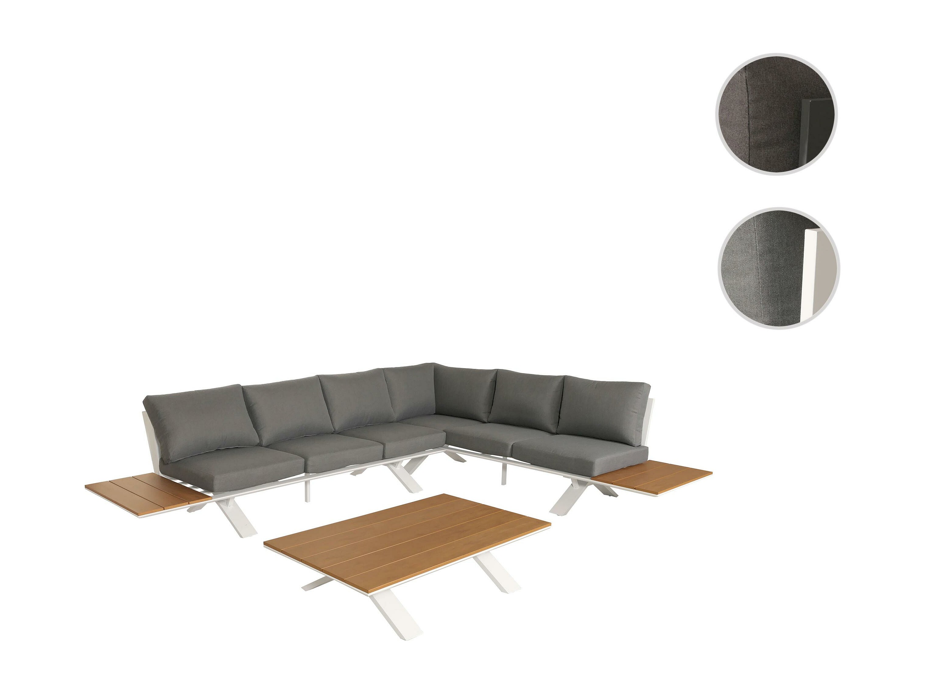 Set salotto giardino esterno salottino MCW-H54b aspetto legno alluminio con cuscini grigio scuro