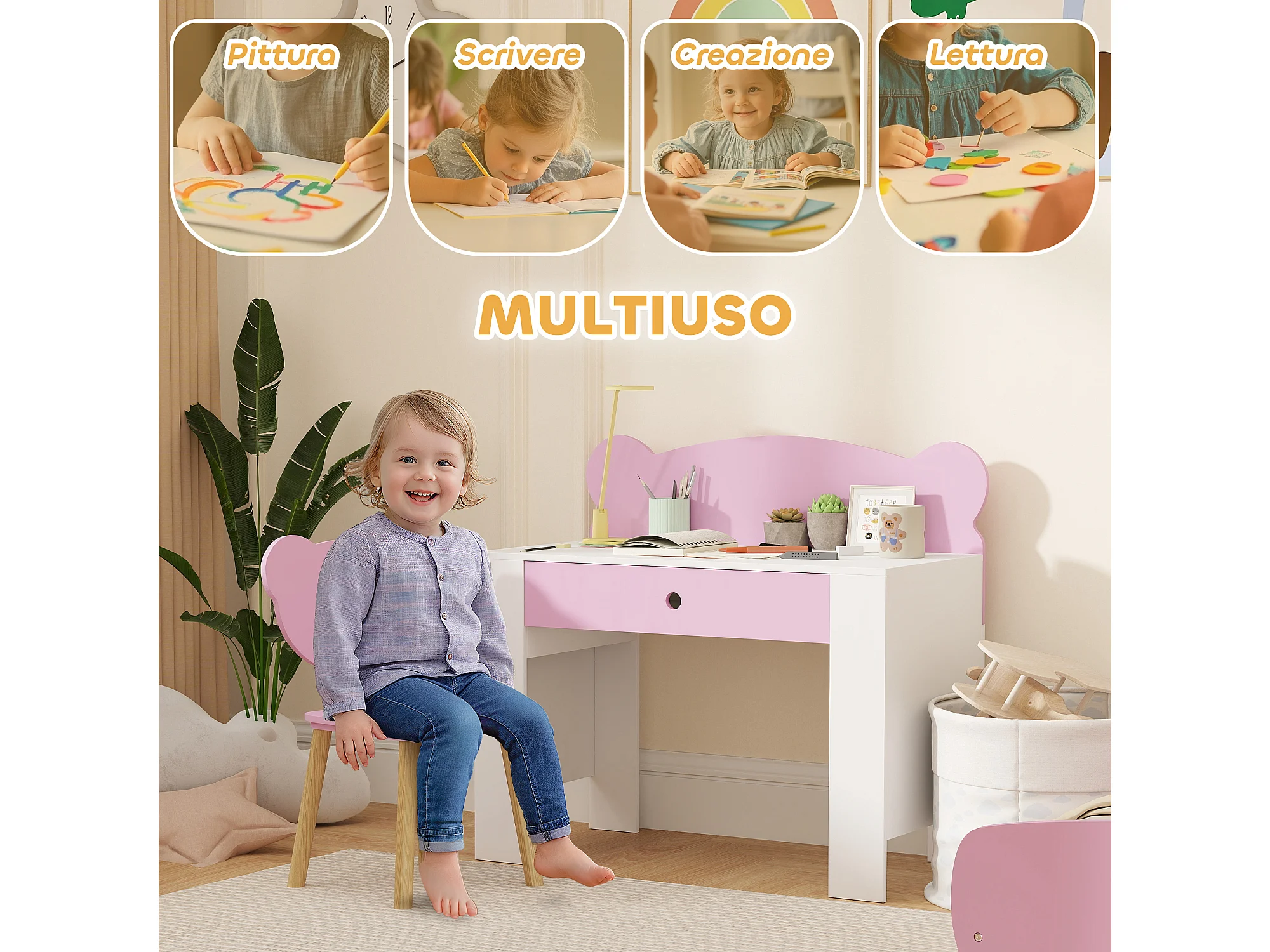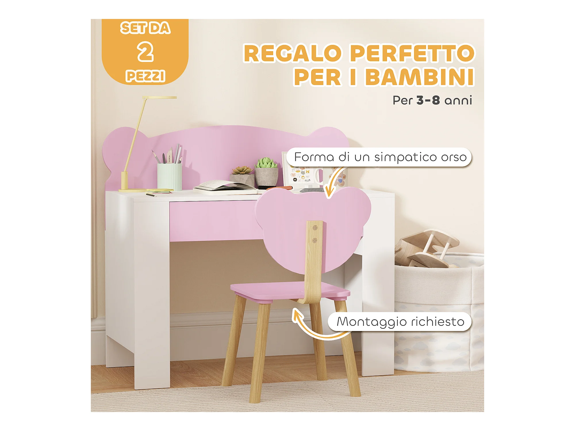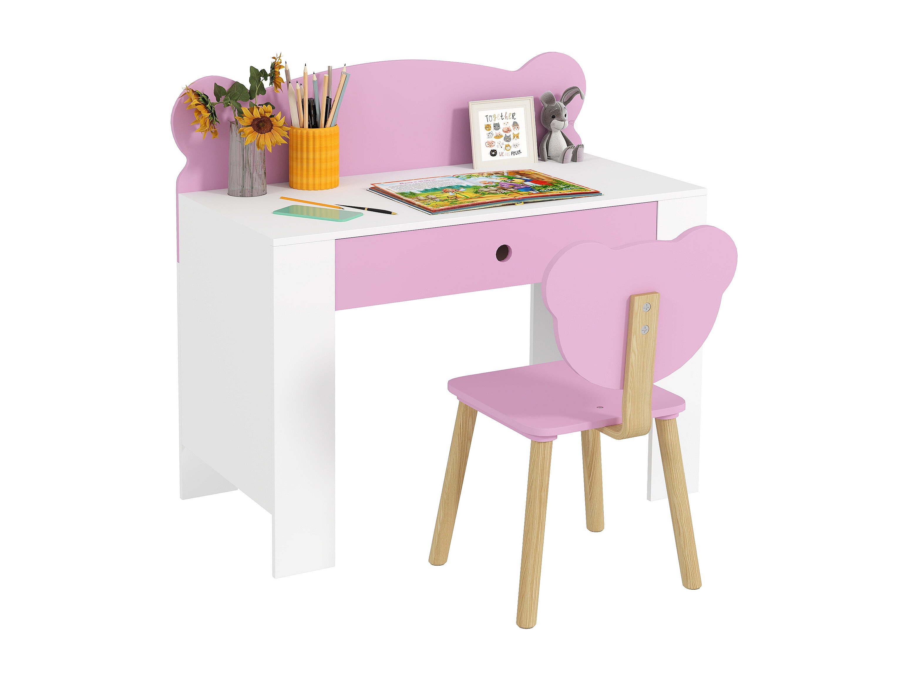 Set scrivania per bambini 3-8 anni con sedia a orsetto rosa