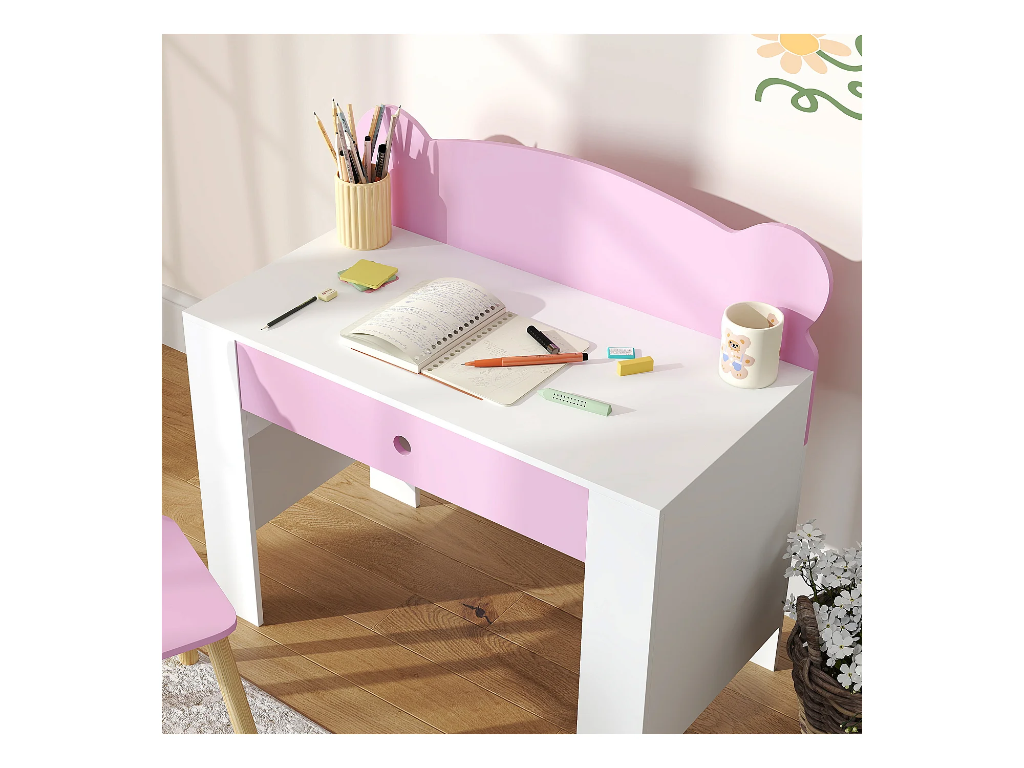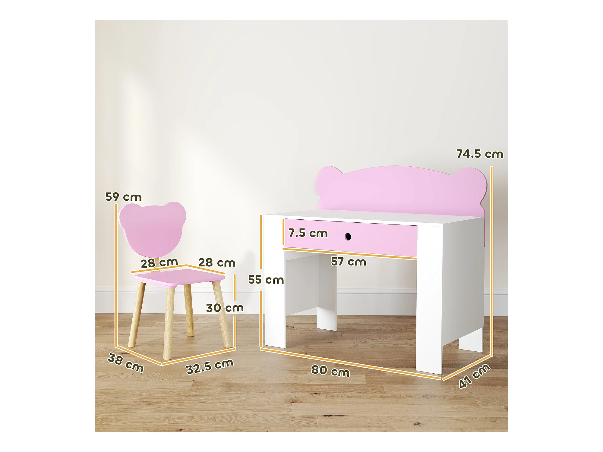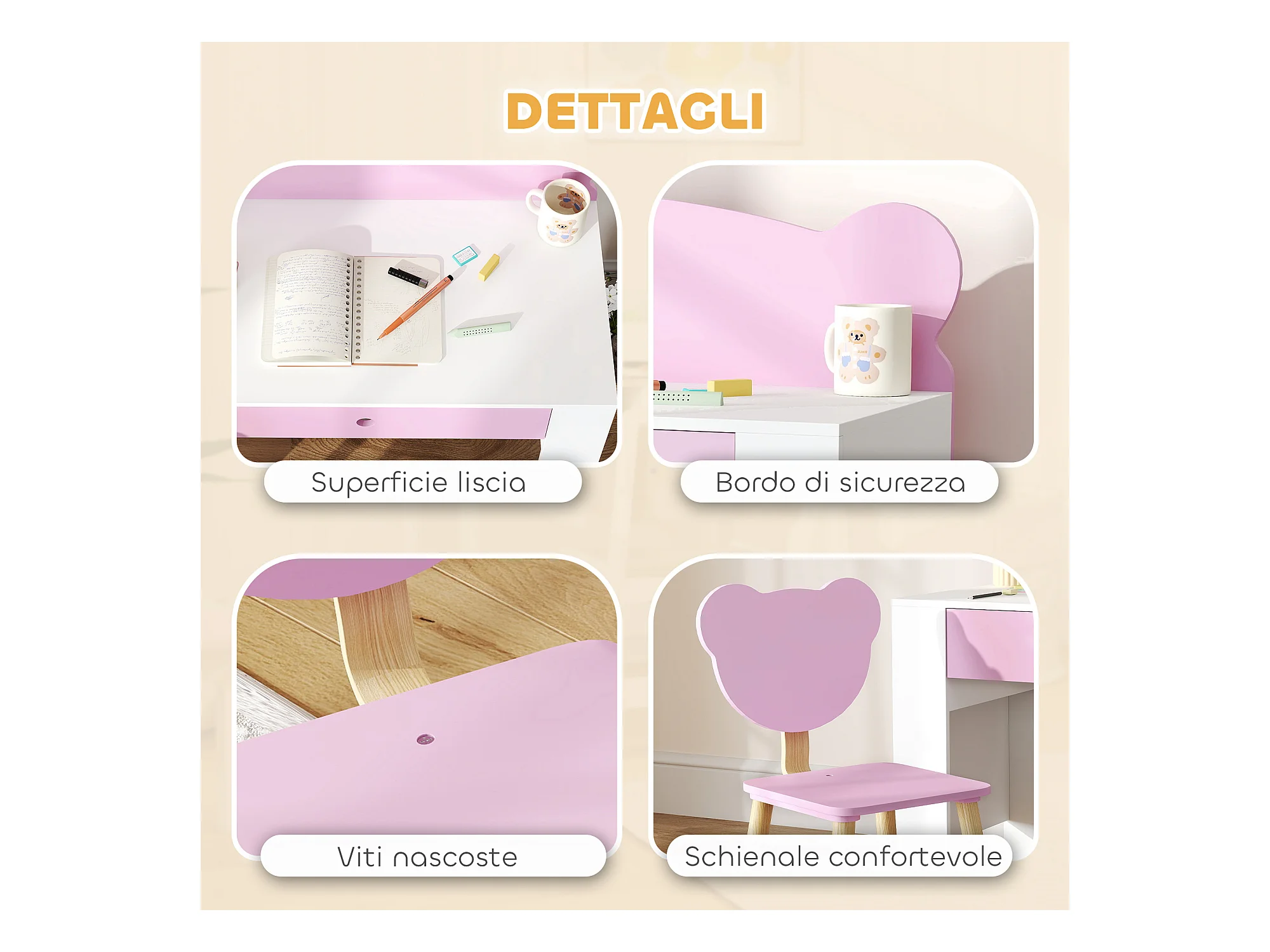 Set scrivania per bambini 3-8 anni con sedia a orsetto rosa