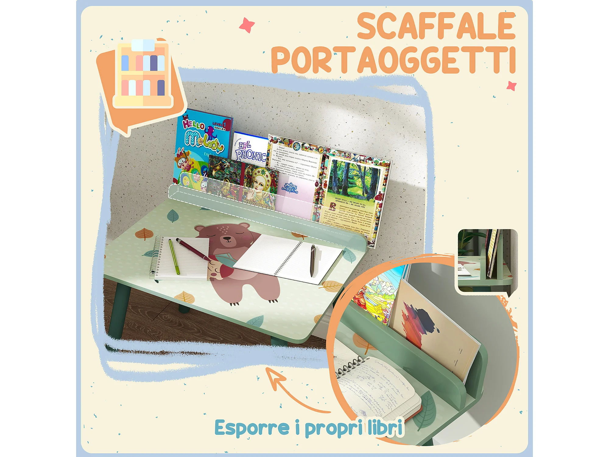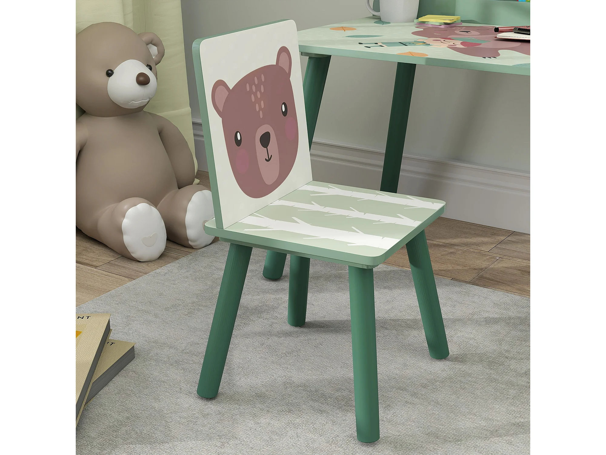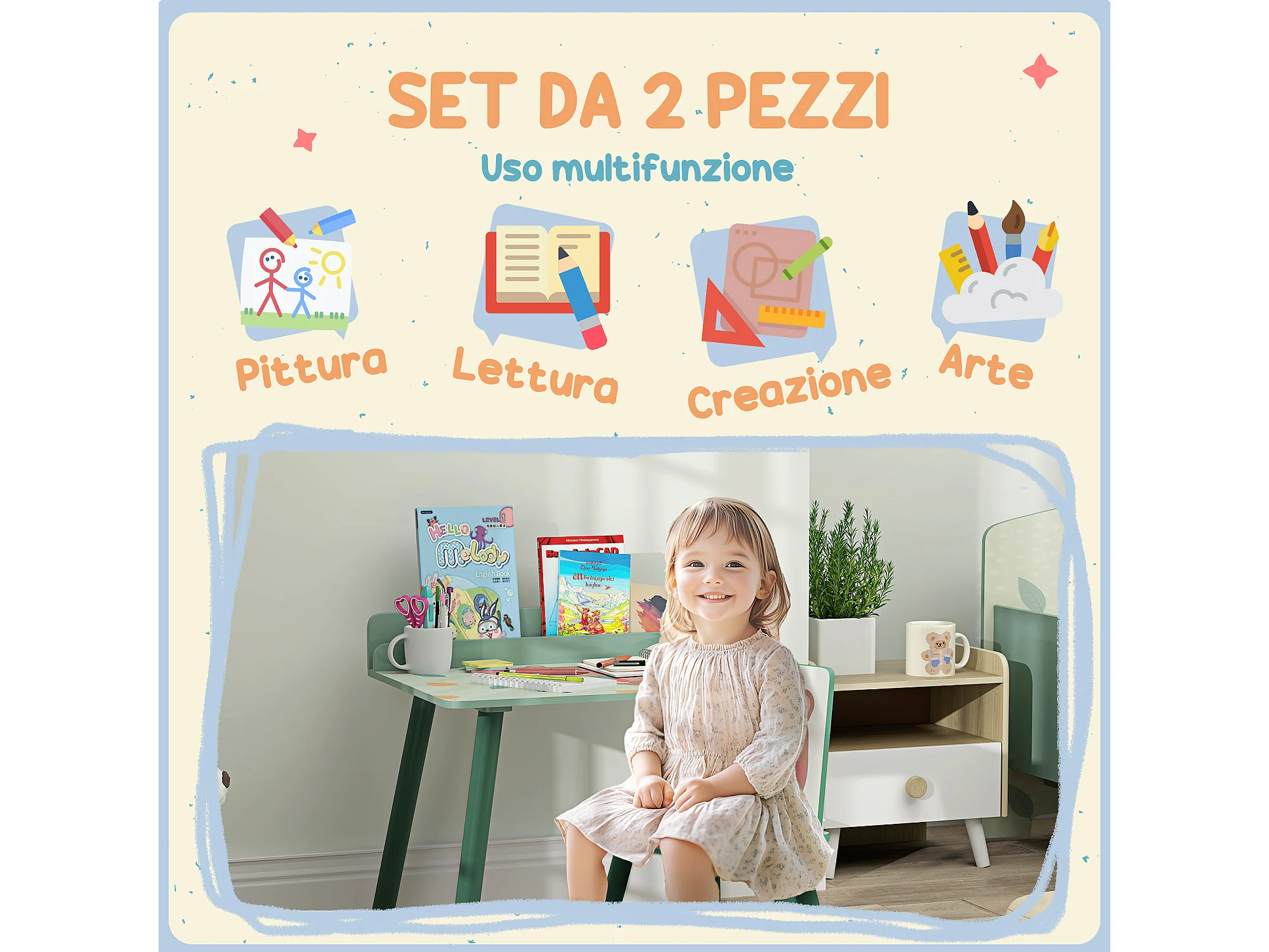 Set Sedia e tavolino per bambini con ripiano in legno verde