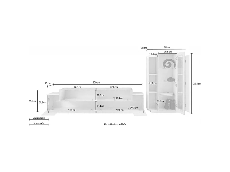 Set Soggiorno Coro 200 – Mobile + Vetrina – Bianco e Cemento