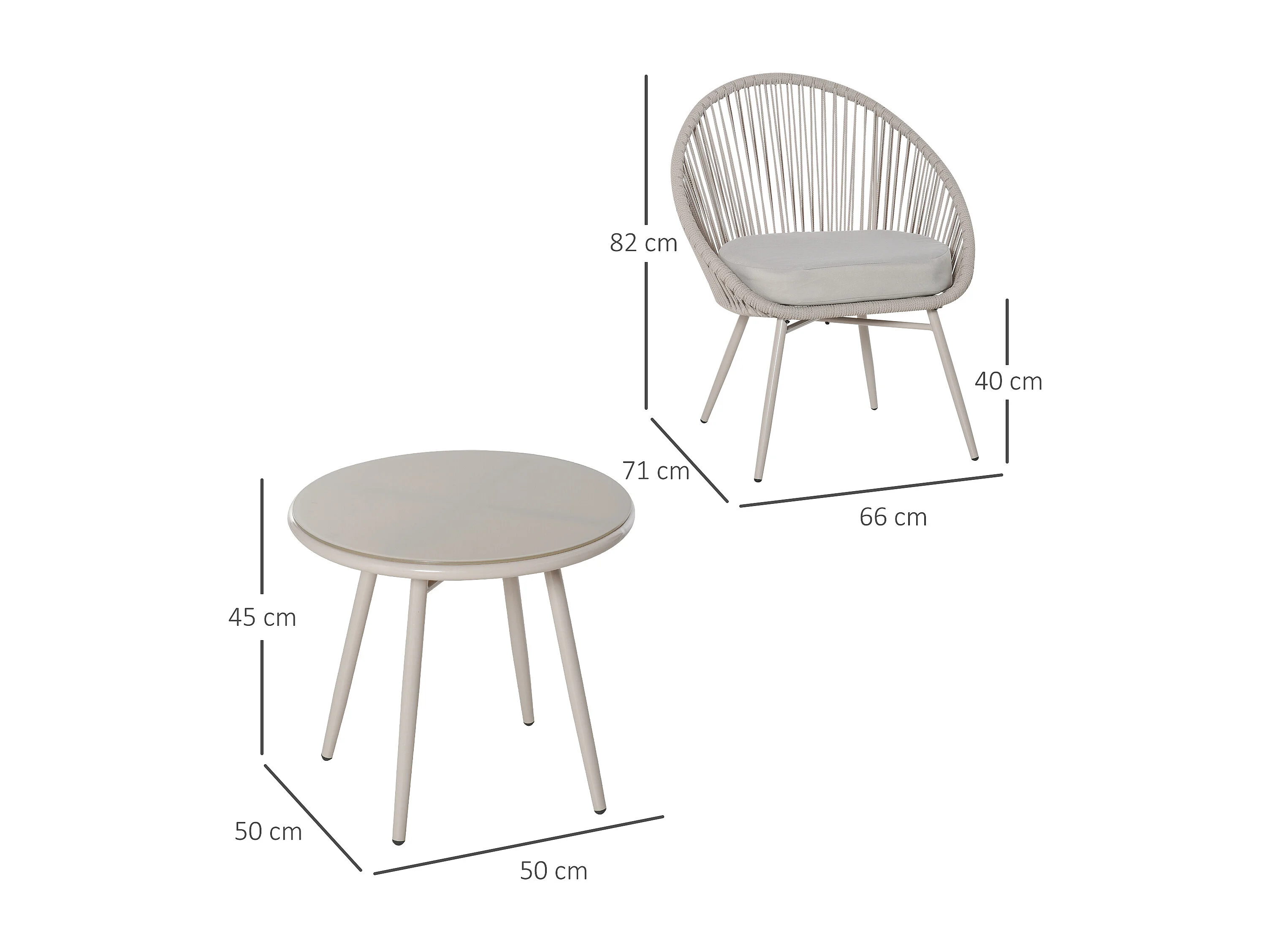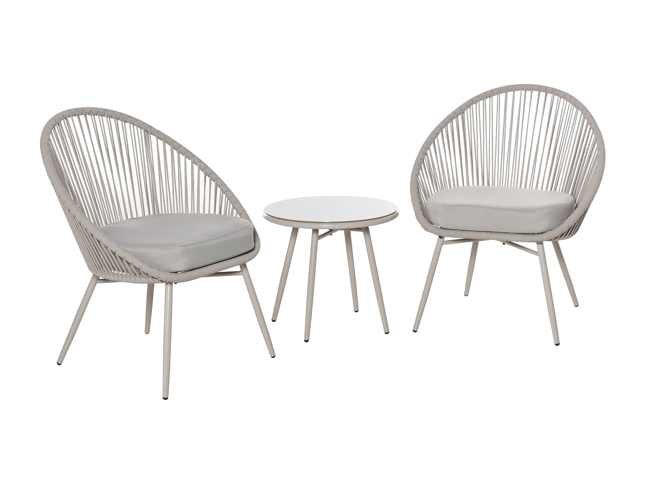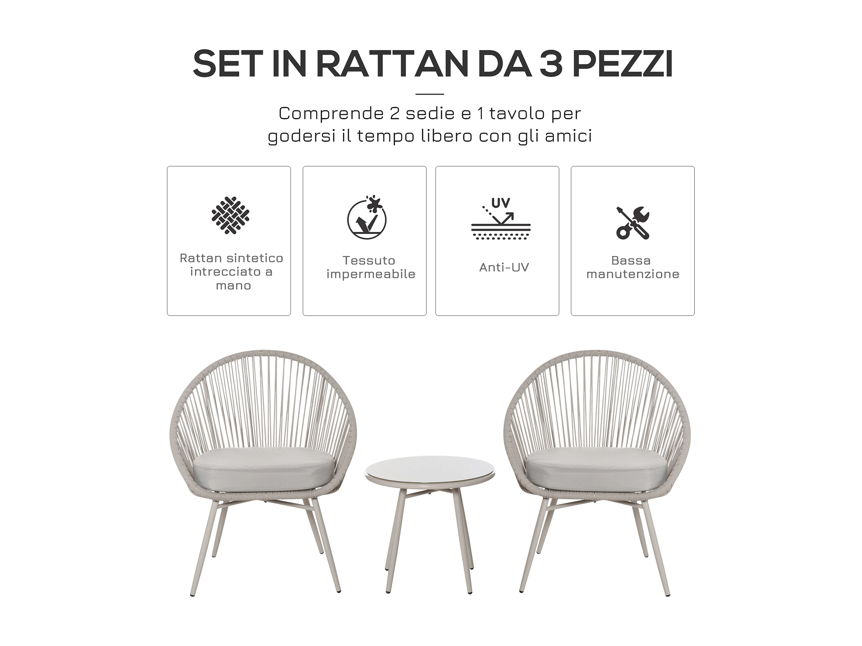 Set tavolino e 2 sedie da giardino rattan bianco stile boho