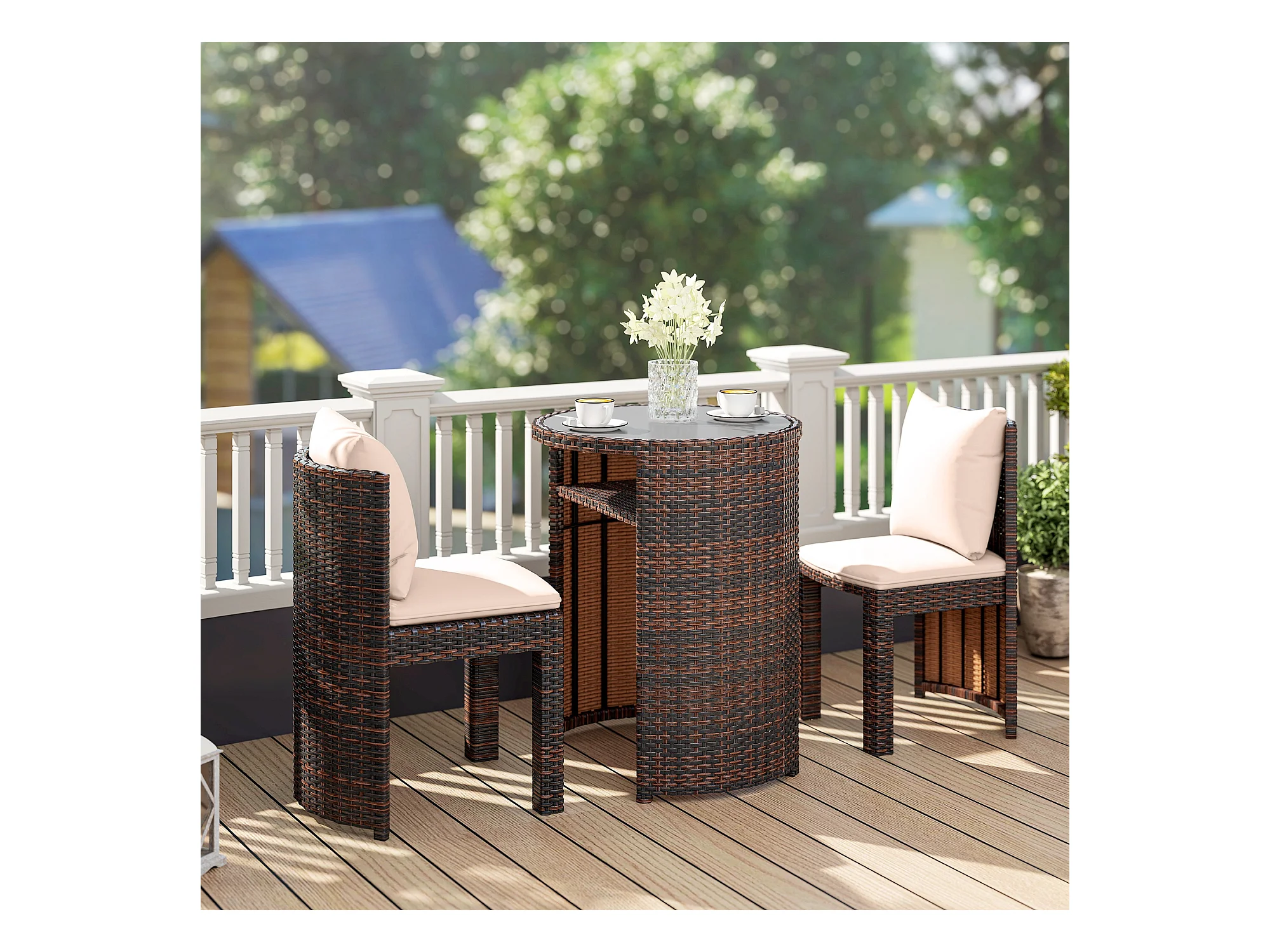 Set da Pranzo da Giardino 3 pz con Cuscini Marrone