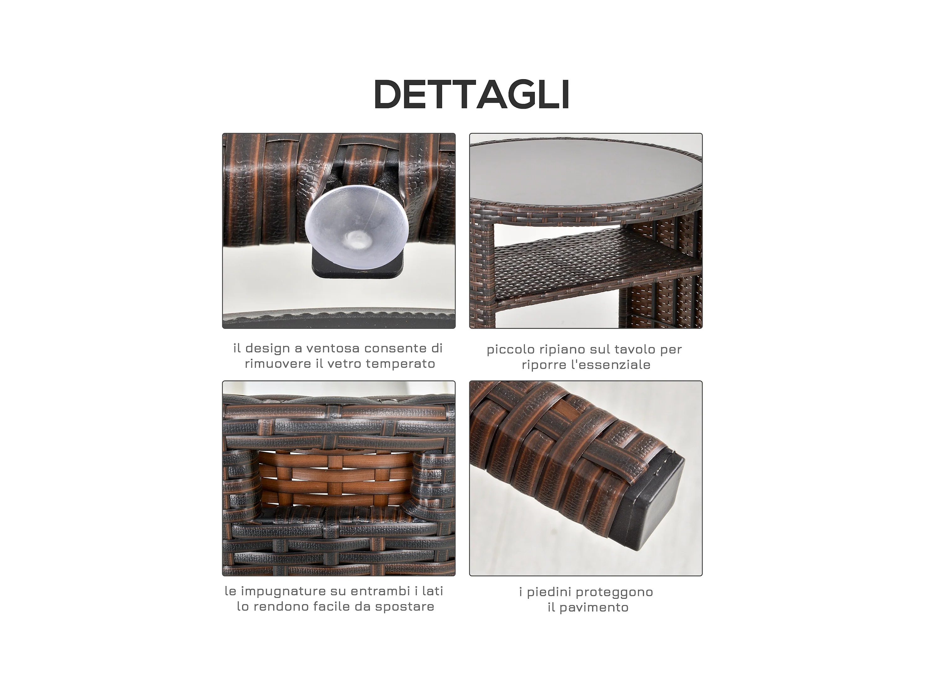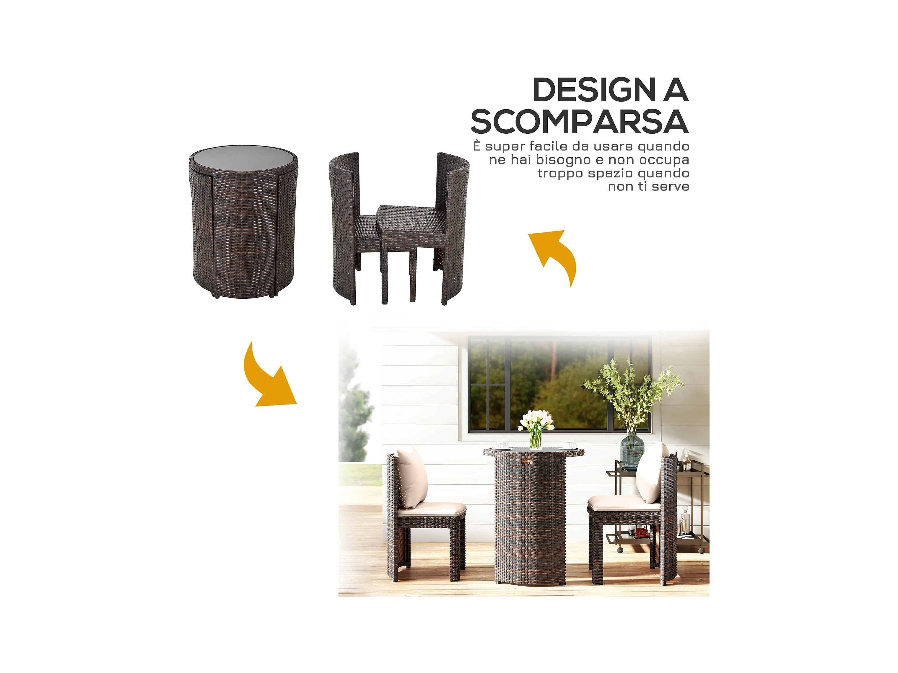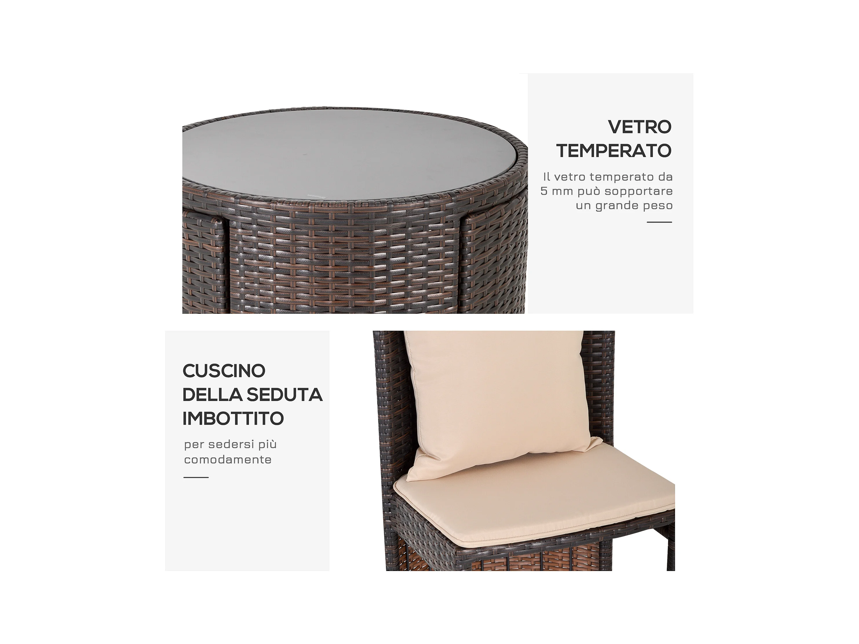 Set tavolino e sedie da esterno e giardino in rattan marrone e beige