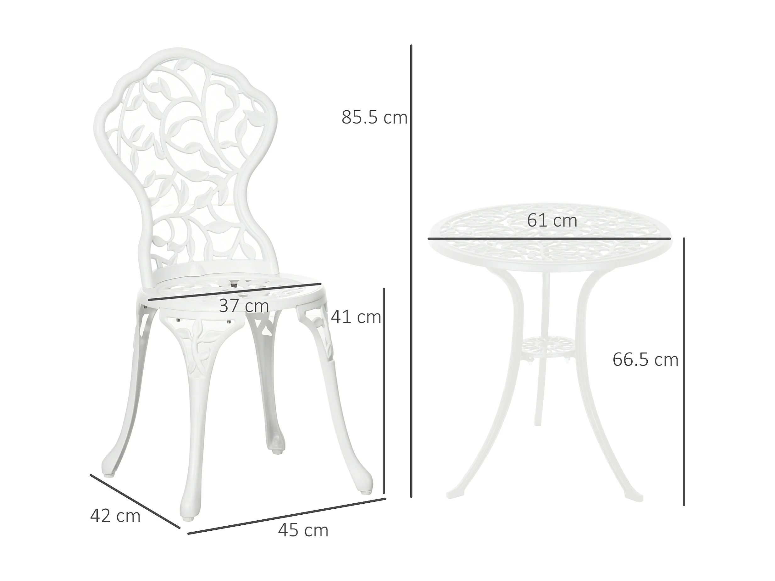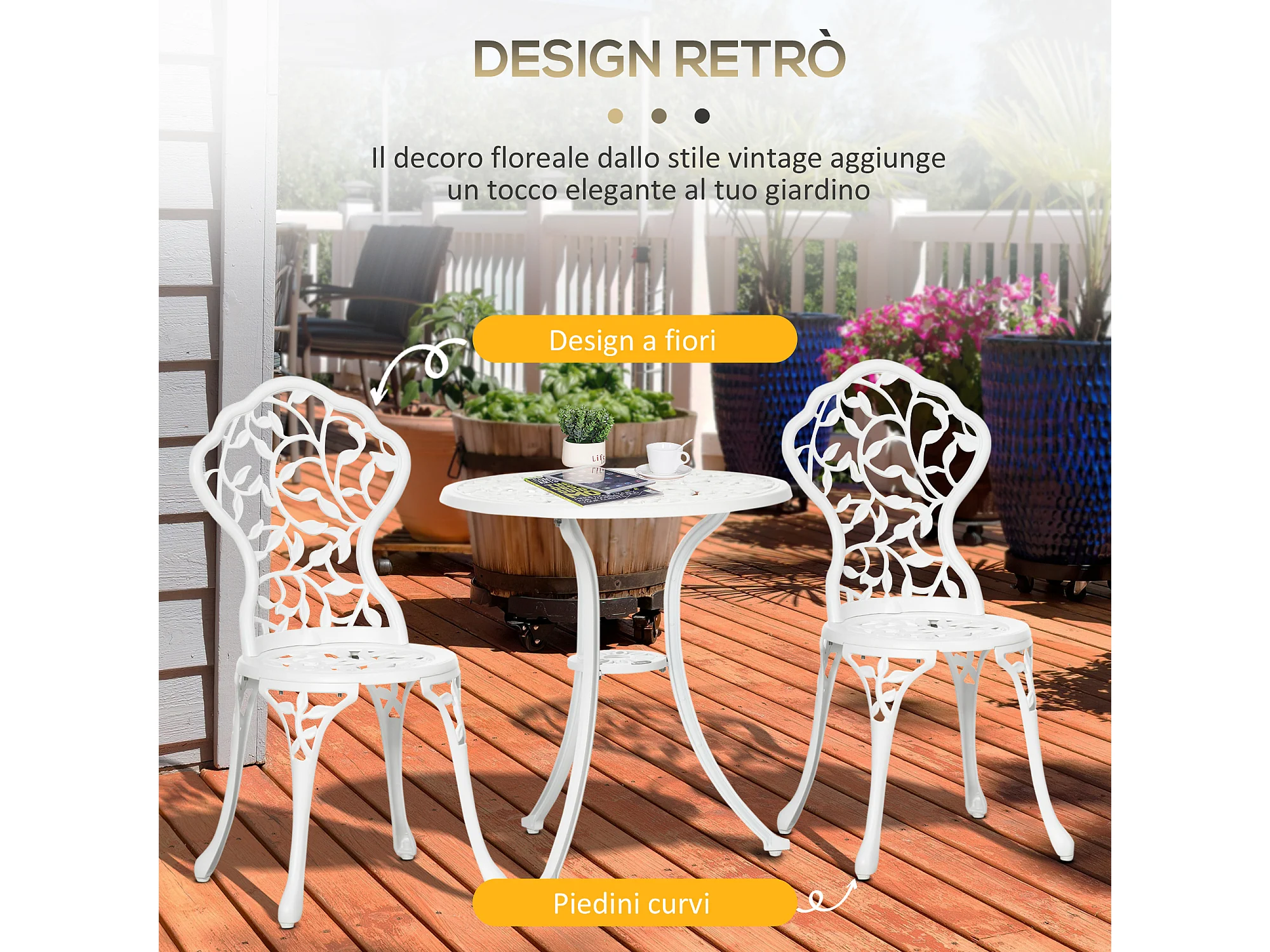 Set tavolino e sedie da giardino 3 pezzi in alluminio bianco