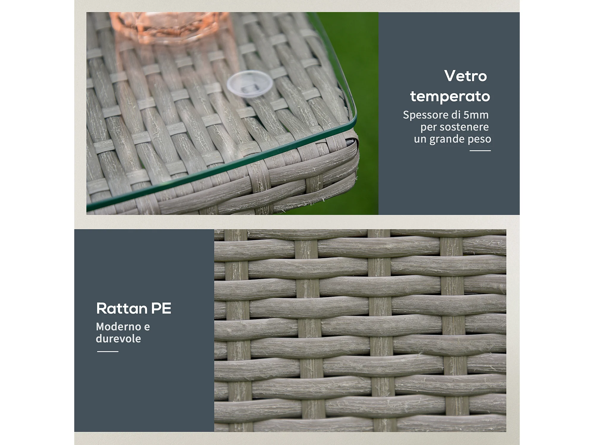 Set tavolino e sedie da giardino salotto da esterno in rattan grigio
