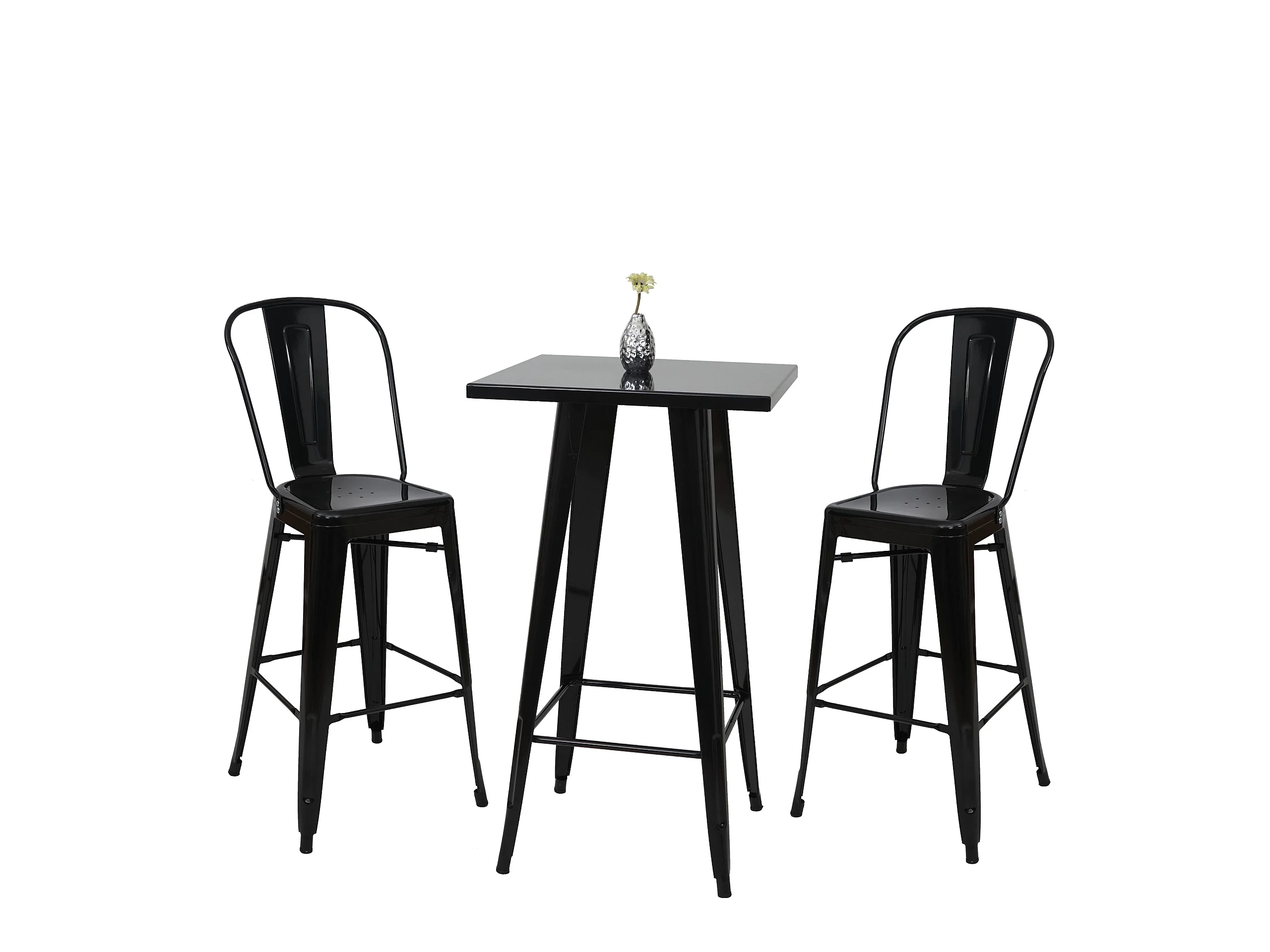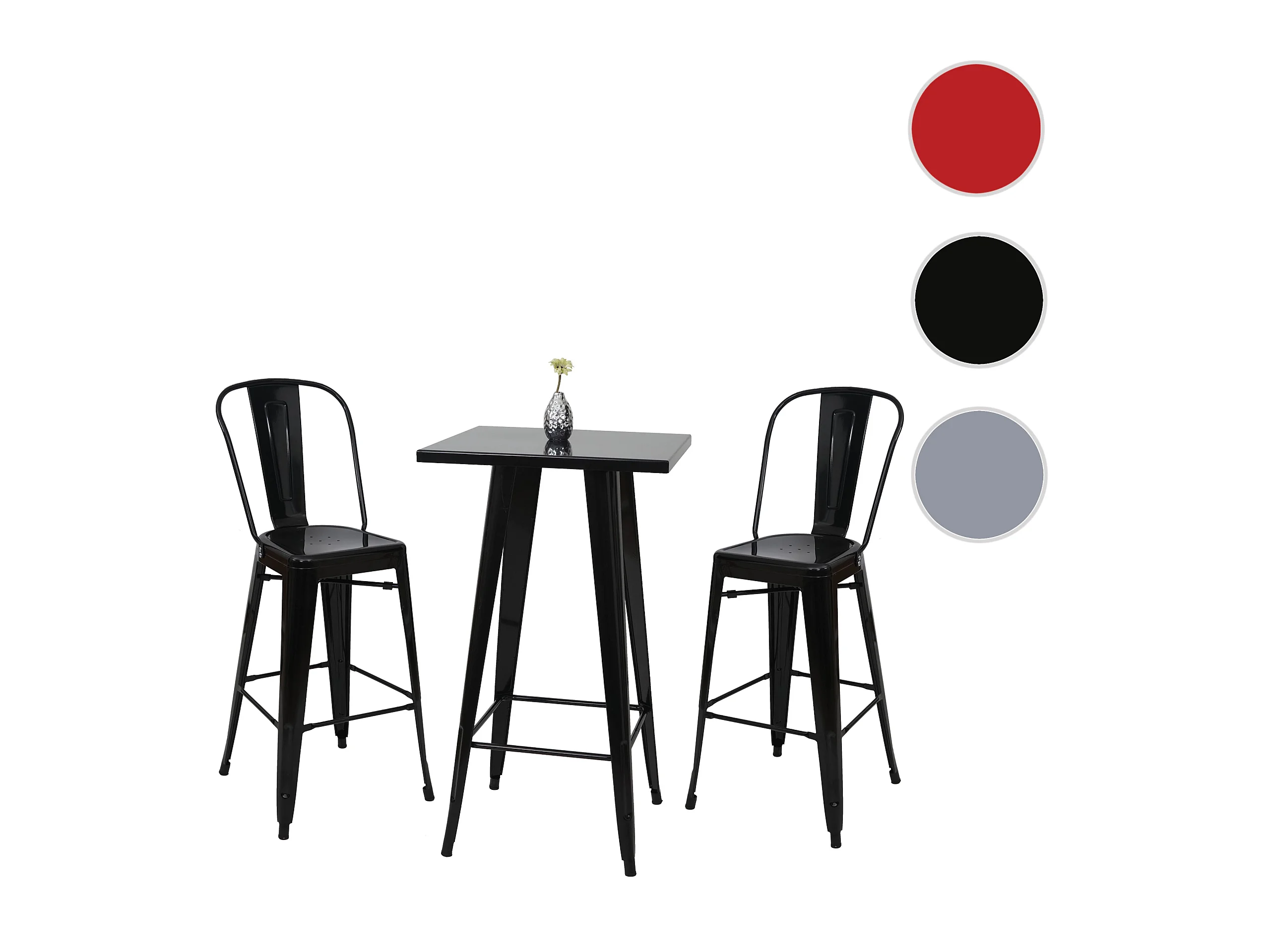 Set tavolo 2x sedie sgabelli bar design industriale MCW-A73 metallo nero
