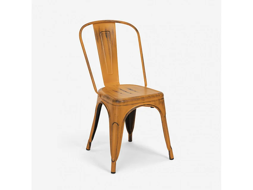 Set tavolo 80x80cm in metallo e legno 4 sedie vintage bar Pear Martini