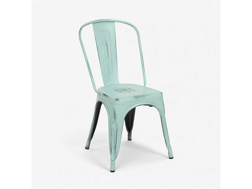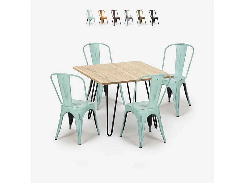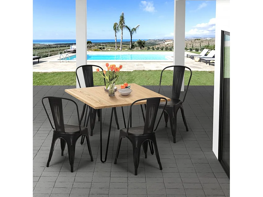 Set tavolo 80x80cm in metallo e legno 4 sedie vintage bar Pear Martini
