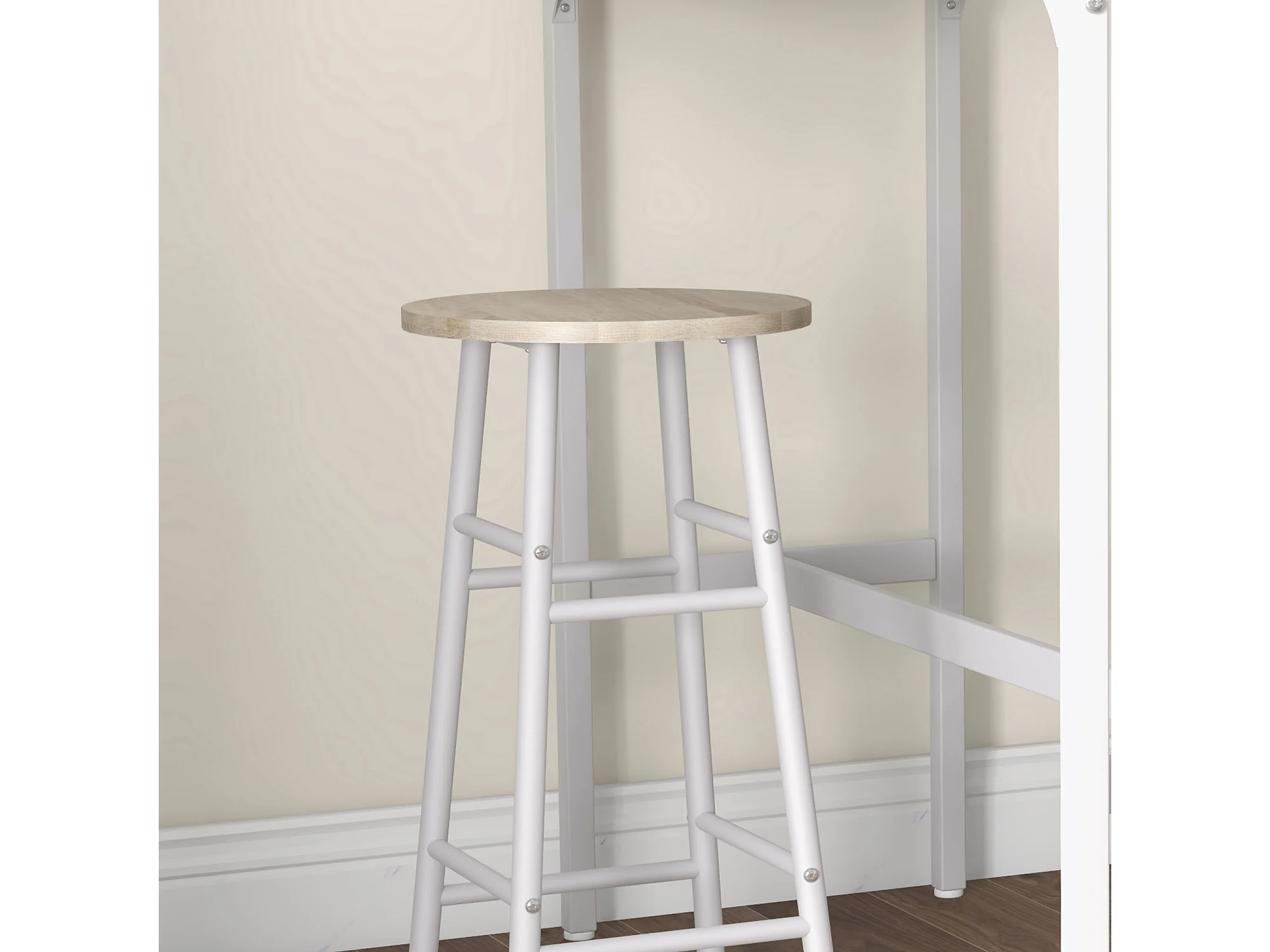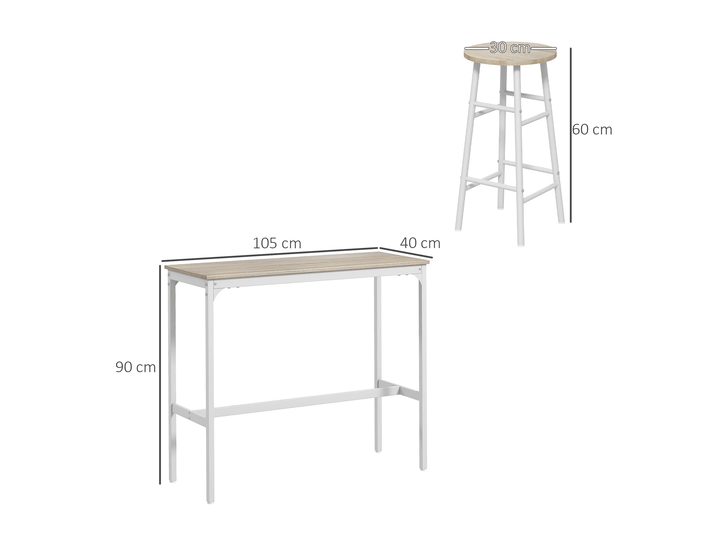 Set tavolo alto e 2 sgabelli da bar stile industriale bianco e rovere