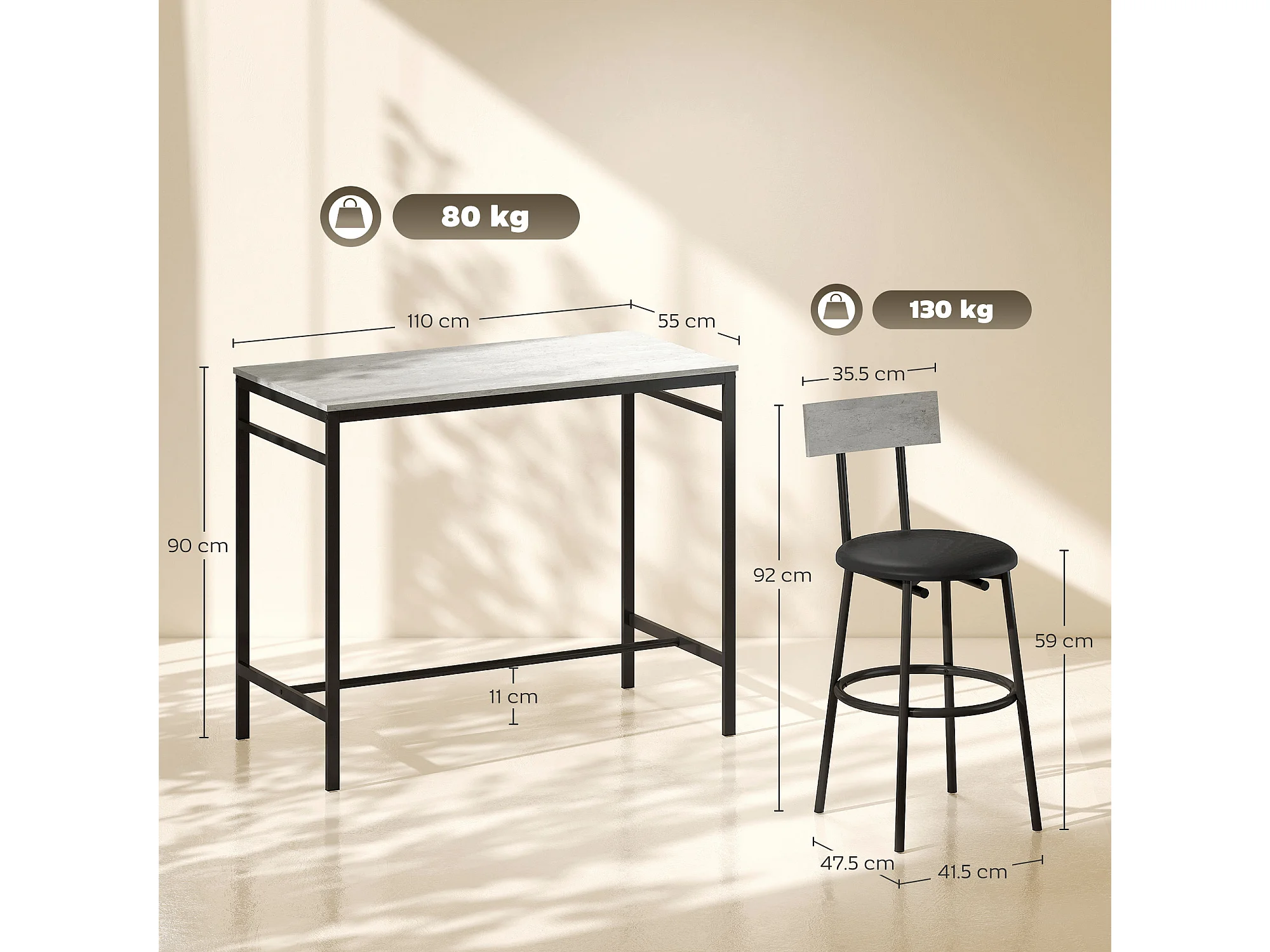 Tavolo bar con sgabelli antracite/bianco 57x80x106