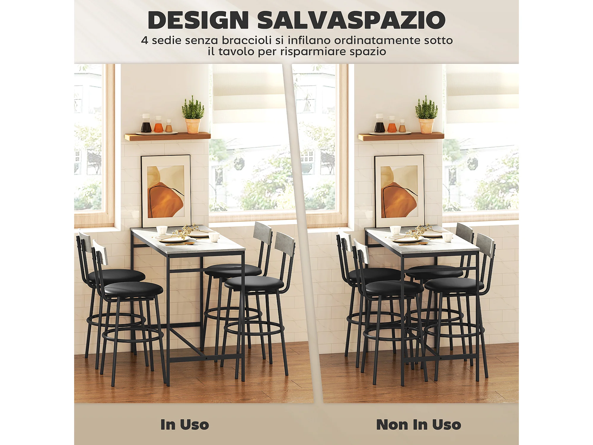 Set tavolo bar con 4 sgabelli con imbottitura pelle pu
