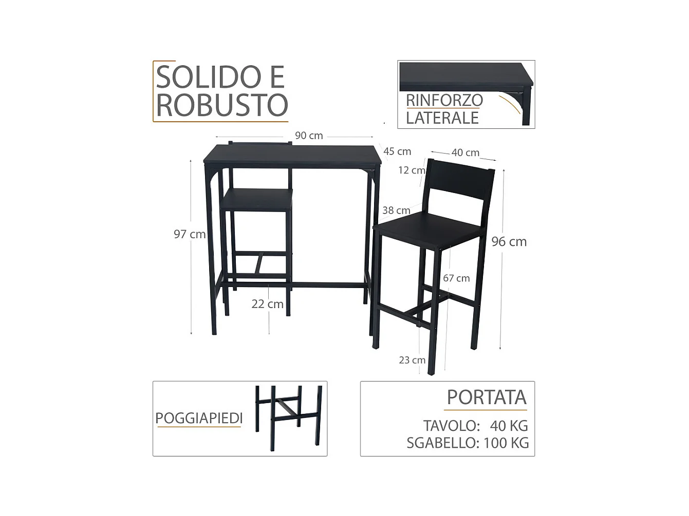 Set Tavolo bar con 4 Sgabelli nero mod. LIGNANO by Yelloo