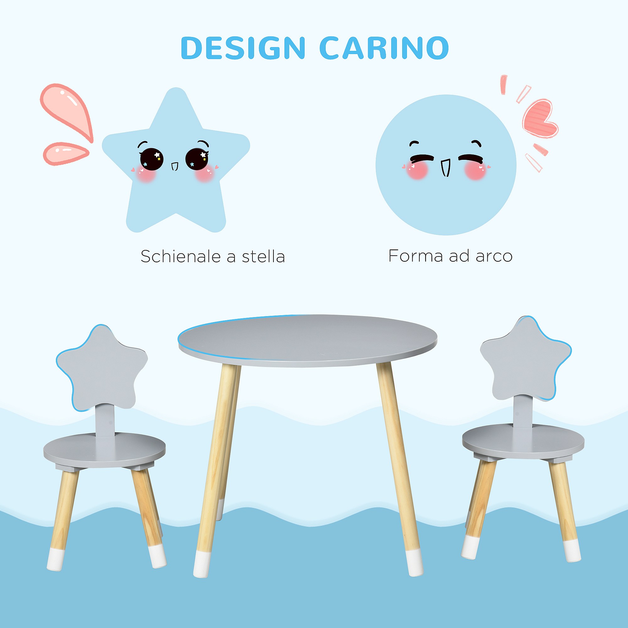 Set tavolo con 2 sedie per bambini da 18 mesi in legno grigio