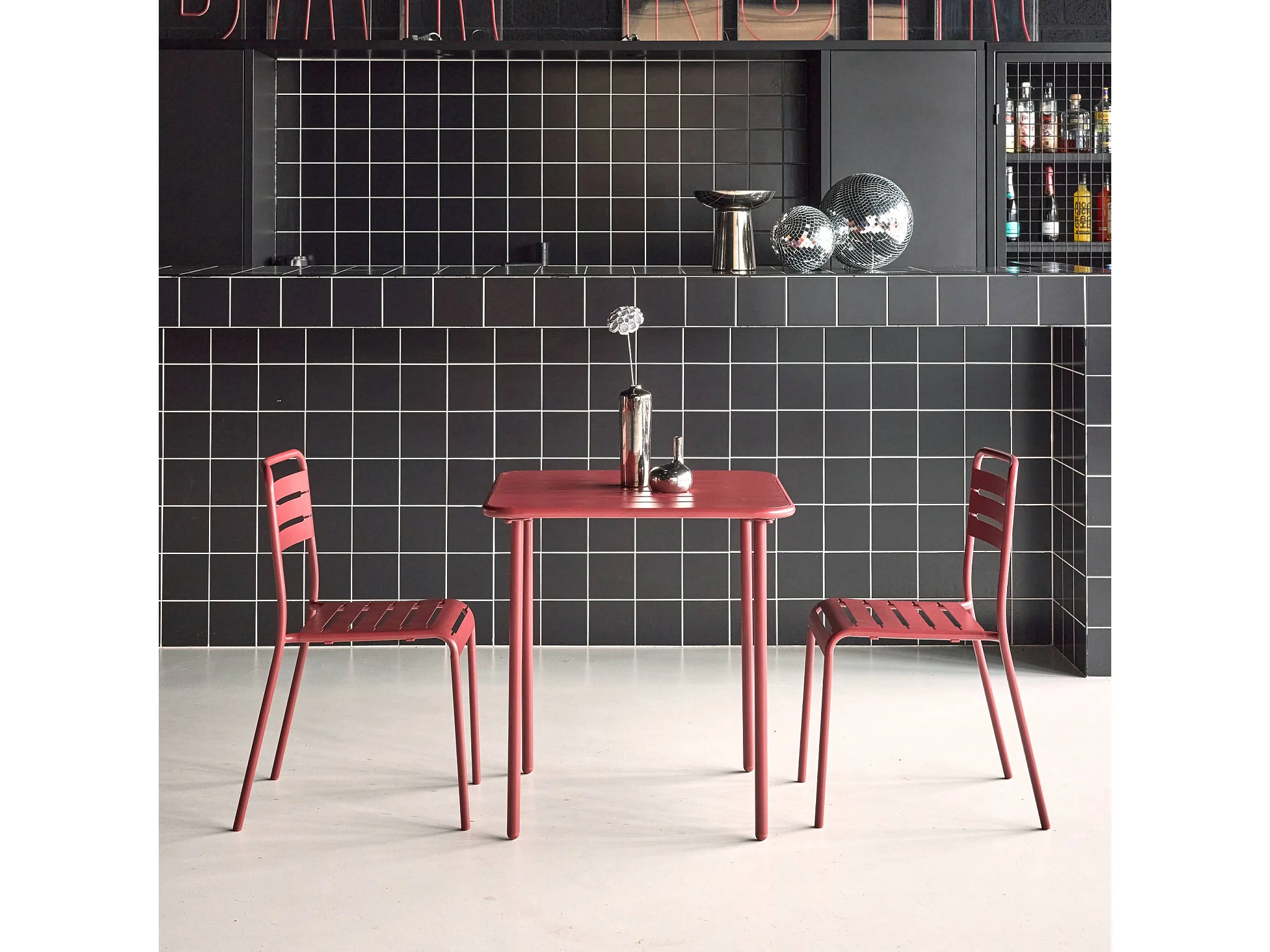 Set tavolo da giardino in acciaio con 2 sedie, 70cm, terra di siena
