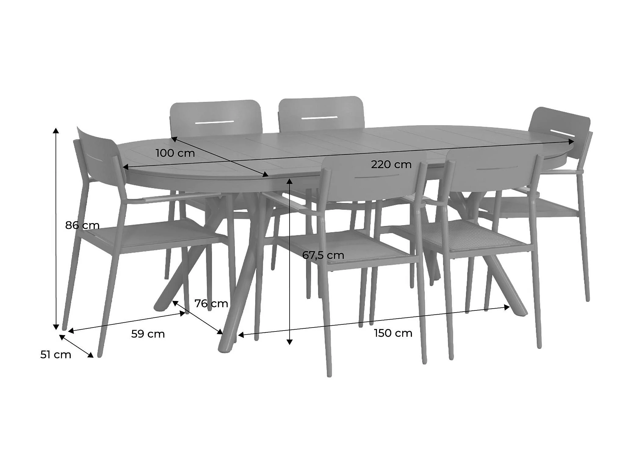 Set tavolo da giardino ovale estensibile in alluminio con 6 sedie,