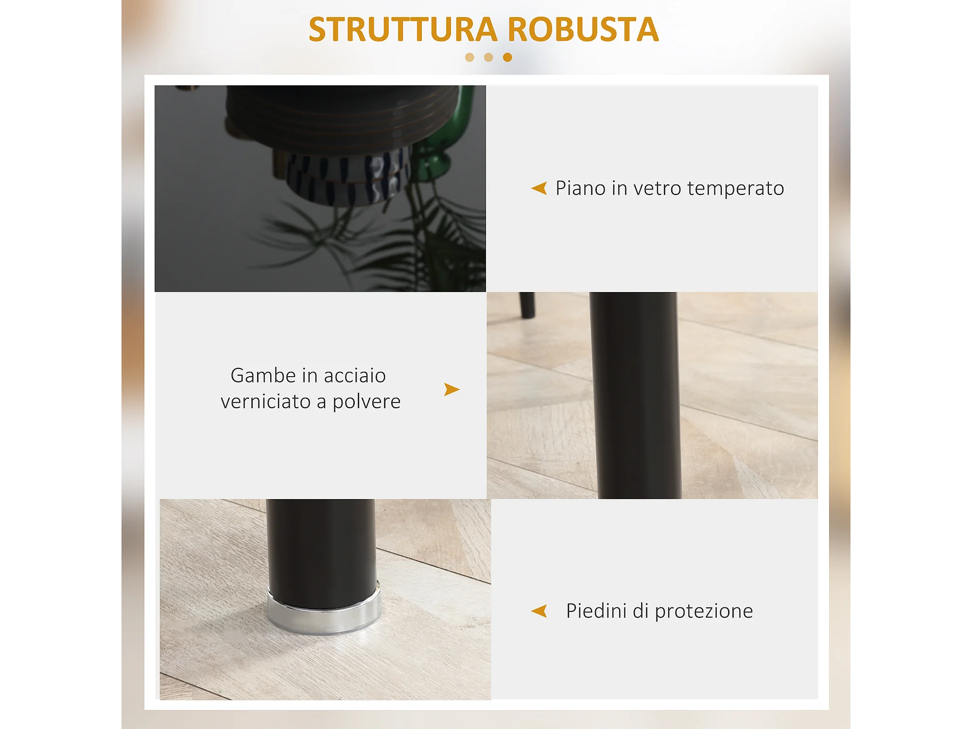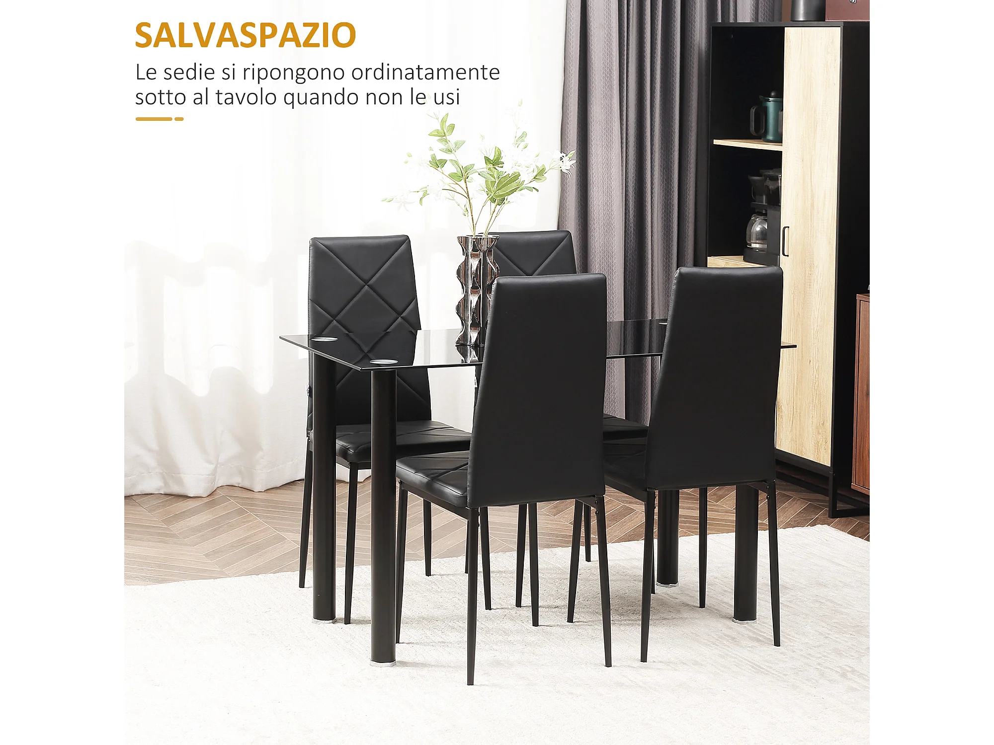 Set 5 Pezzi da Pranzo in Similpelle Metallo e Vetro Nero