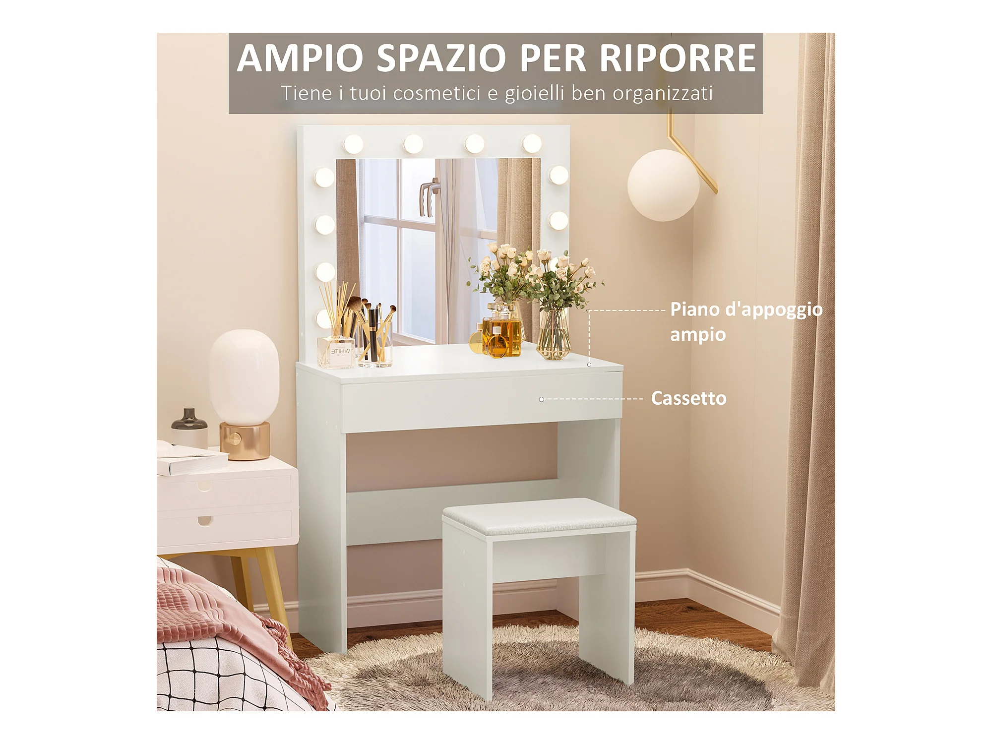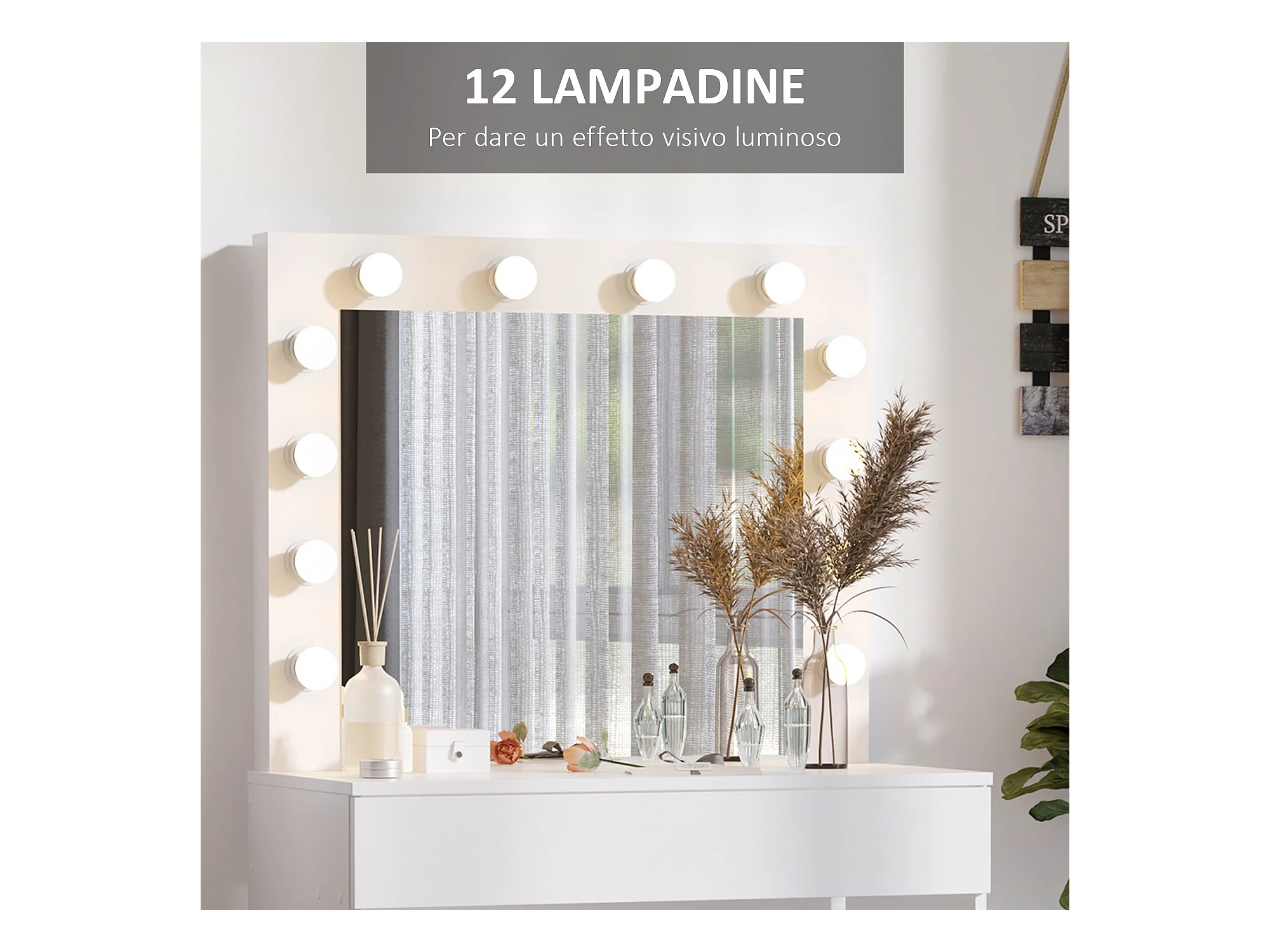 Tavolino cosmetico toeletta trucco make-up bianco con specchio illuminazione LED