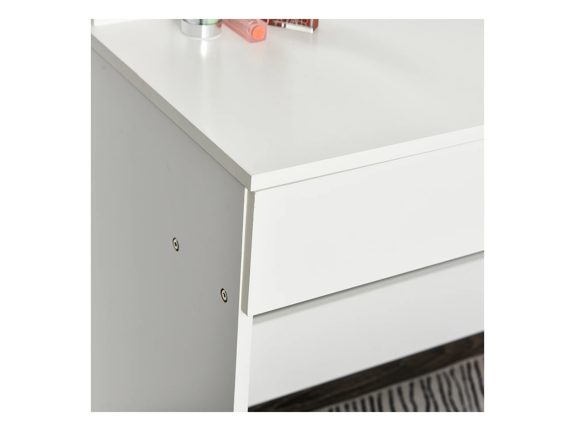 Toletta con specchio LED - 100 x 40 x 75 cm - con 3 cassetti + 1 anta - senza sgabello - truciolato - bianco