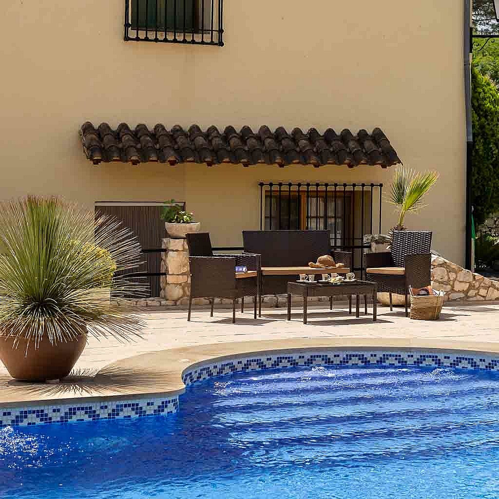 Set salotto giardino esterno salottino elegante MCW-F56 polyrattan marrone con cuscini avorio