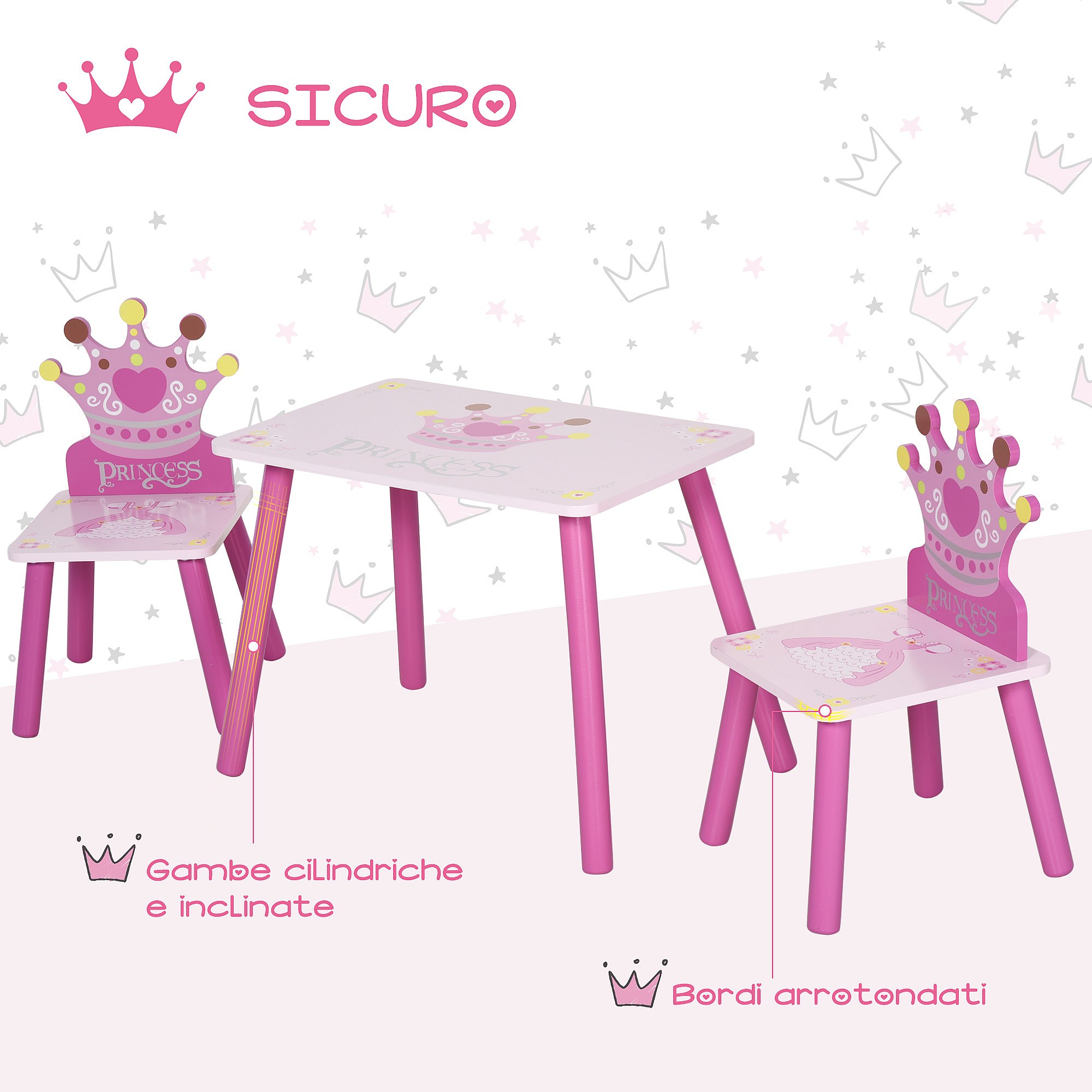 Set tavolo e 2 sedie a tema principesse in legno rosa