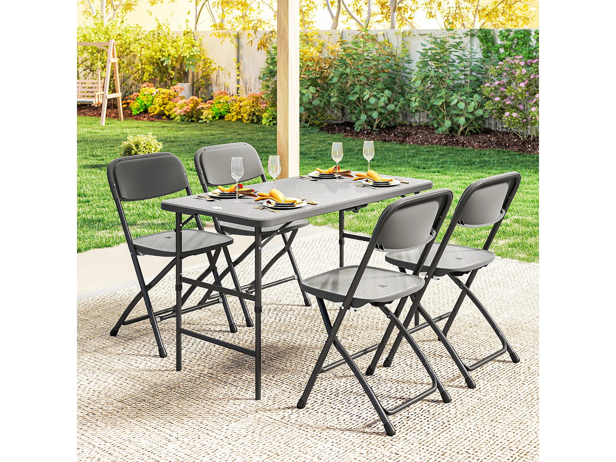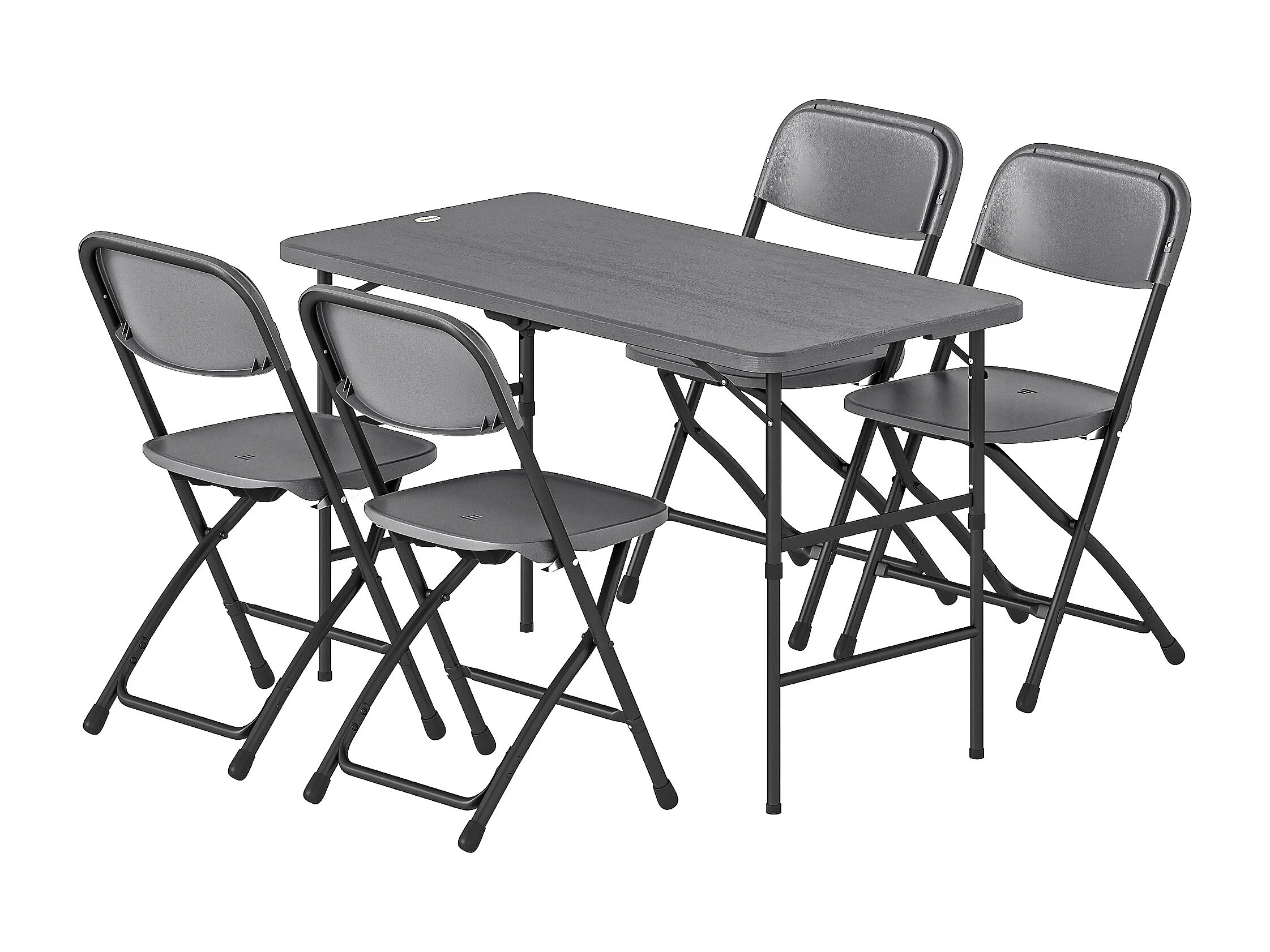 Set tavolo e 4 sedie da giardino pieghevoli in hdpe grigio scuro