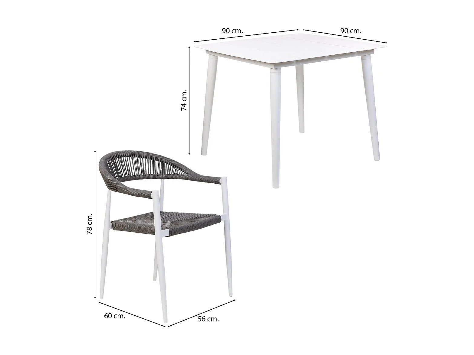Set tavolo e 4 sedie multicolore, tavolo: 90x90x74.sedia(4): 56x60x78