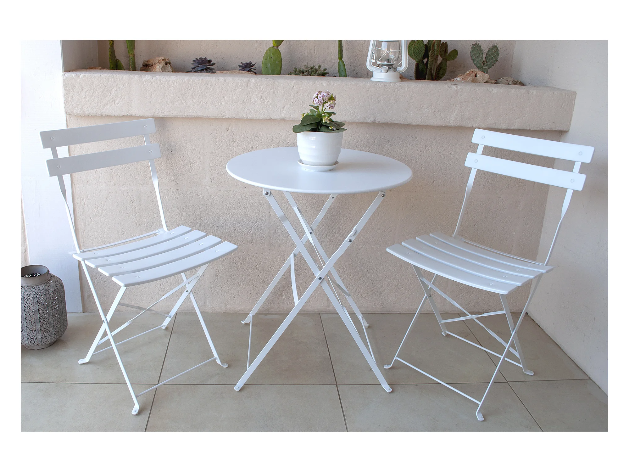 Set bistrot con tavolo e 2 sedie in acciaio bianco - WISSANT