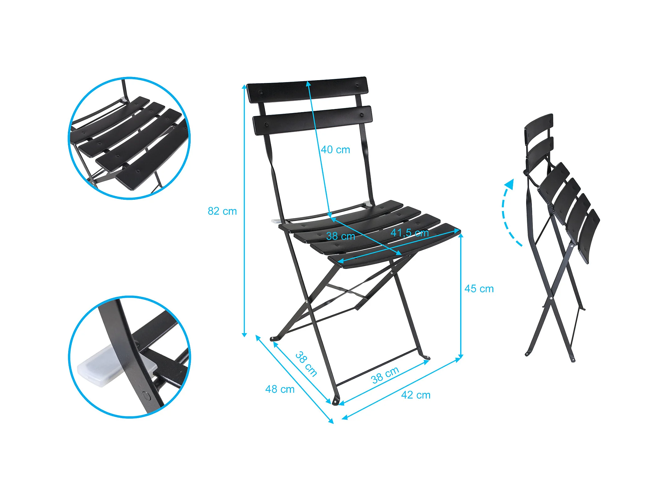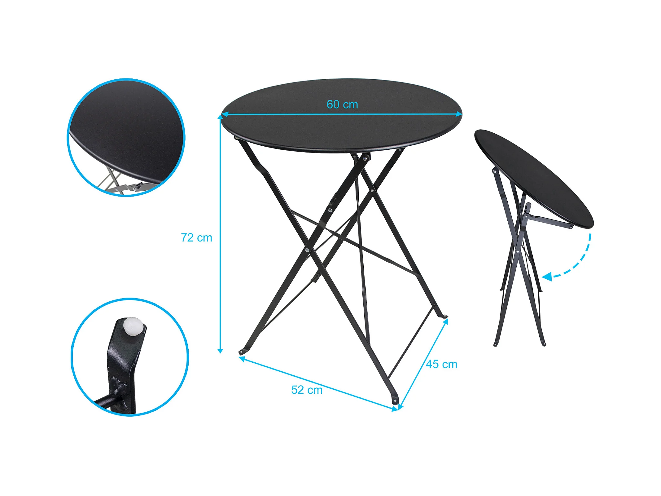 Set bistrot da giardino nero 3 pezzi Agata, tavolo e 2 sedie