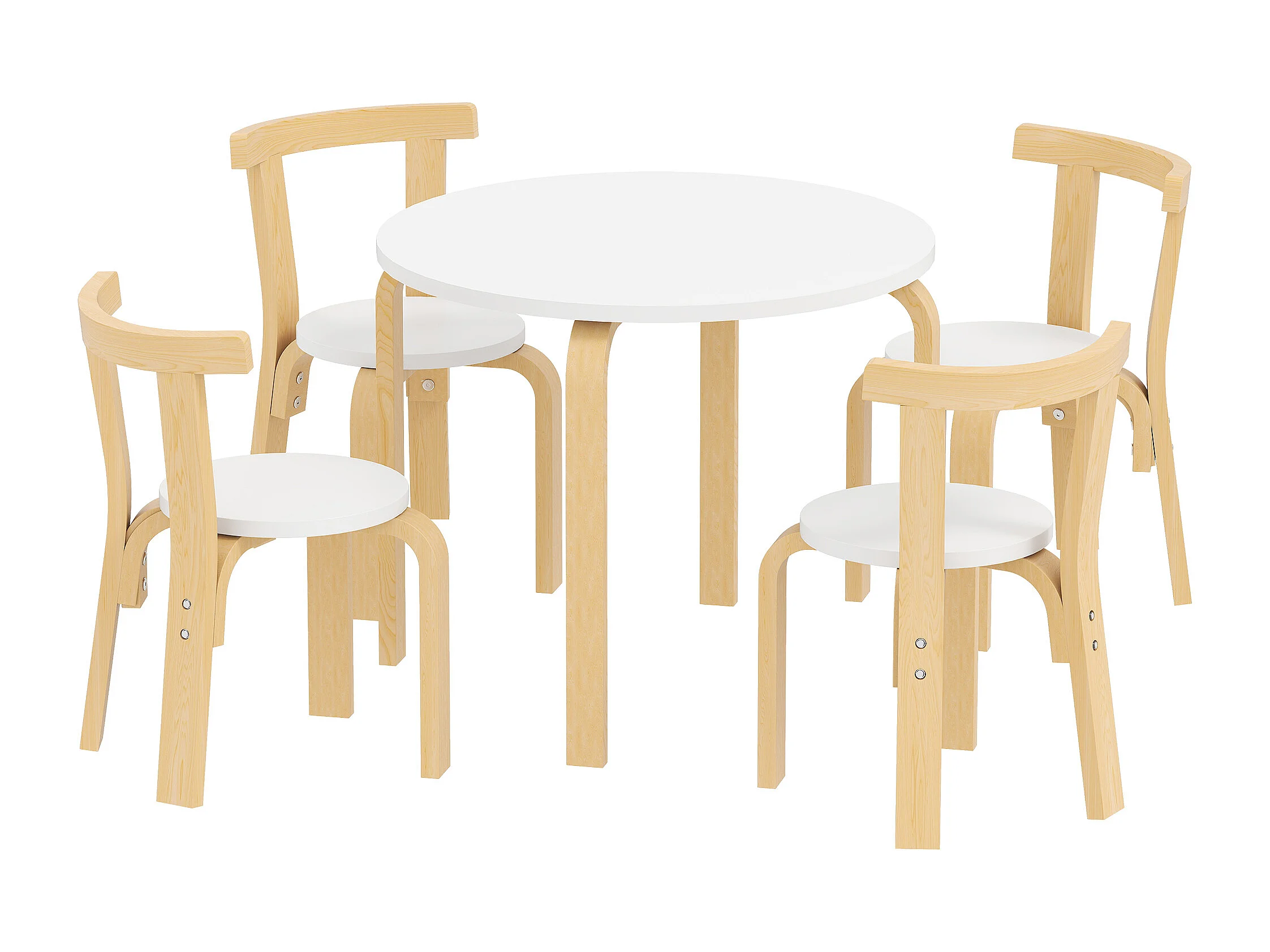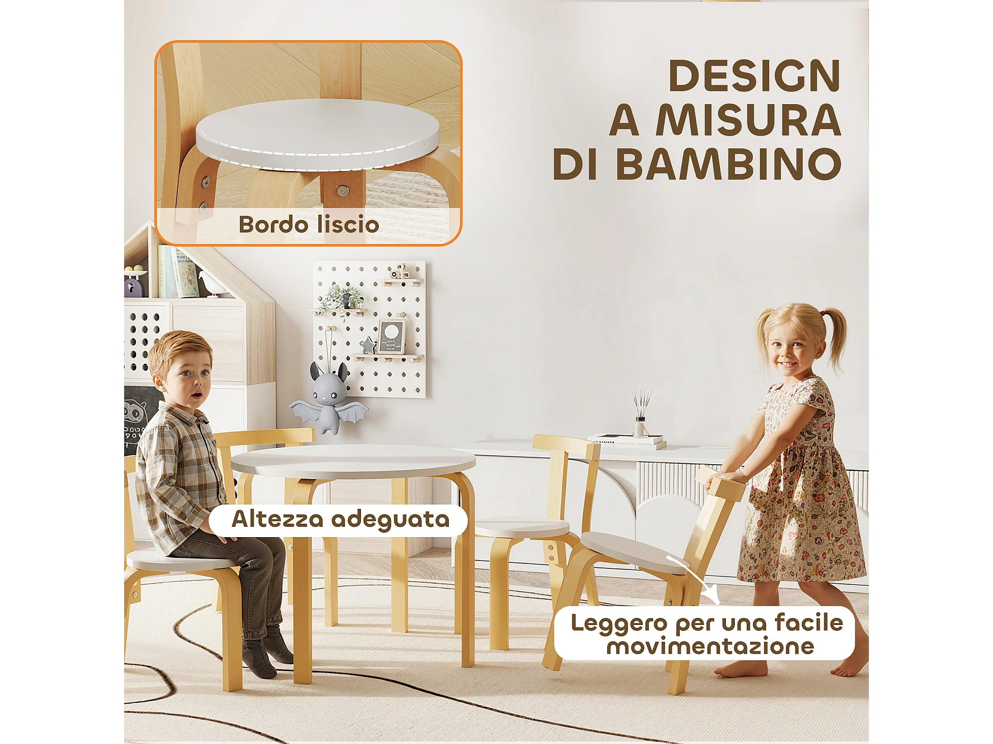 Set tavolo e sedie per bambini 3-8 anni 5 pz in legno bianco