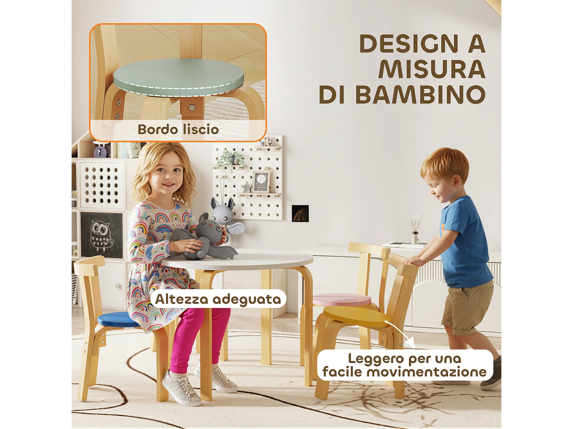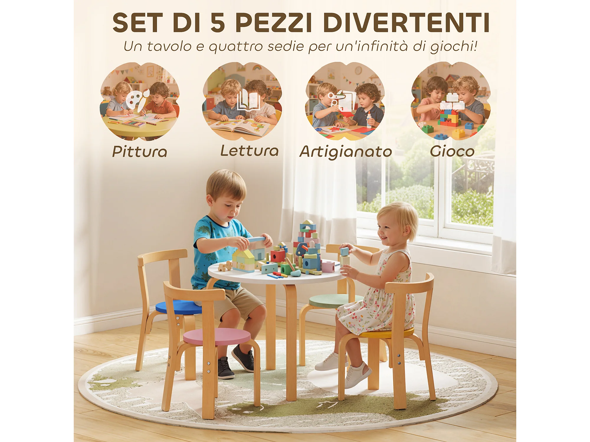 Set tavolo e sedie per bambini 3-8 anni 5 pz in legno multicolore
