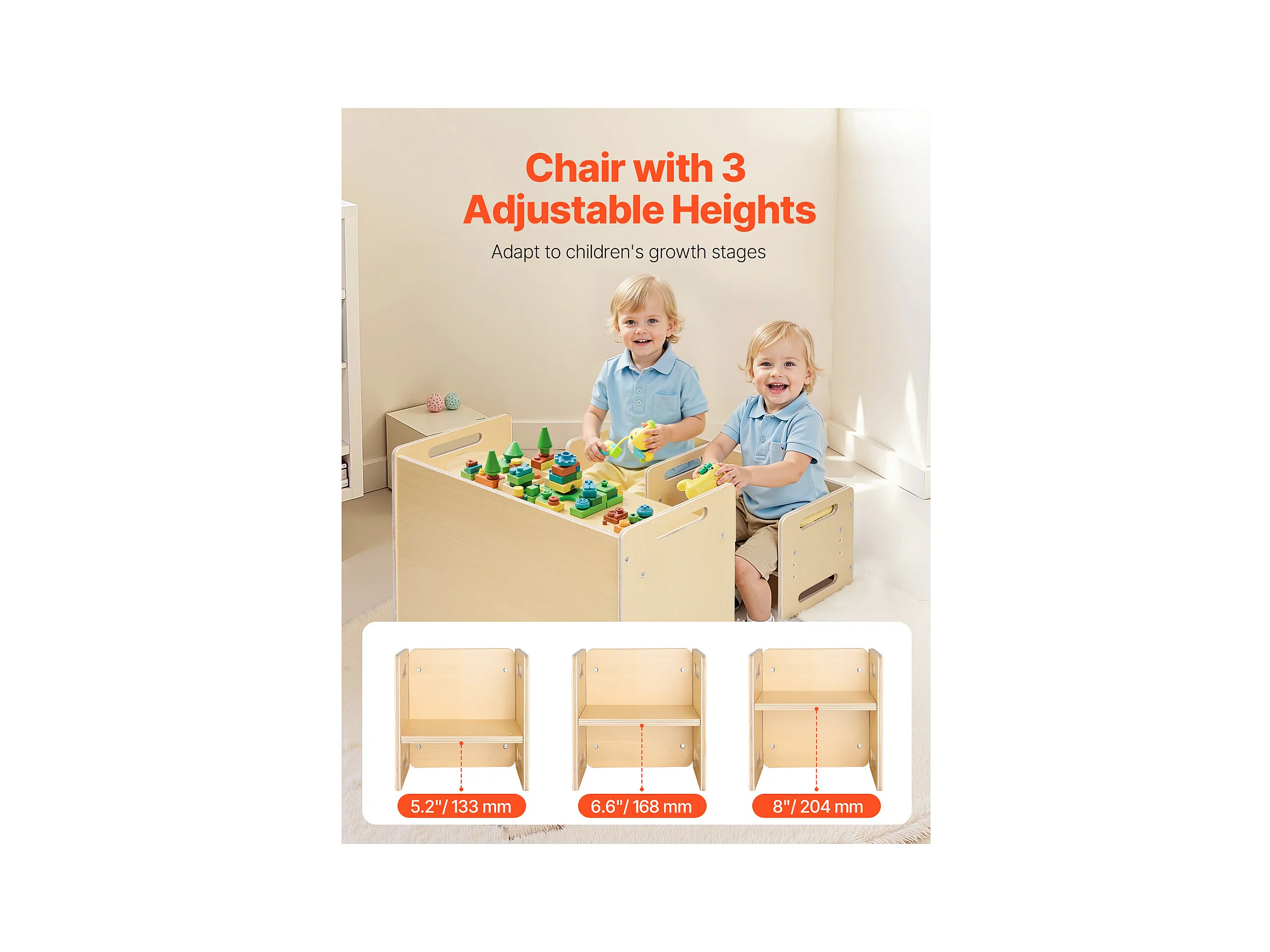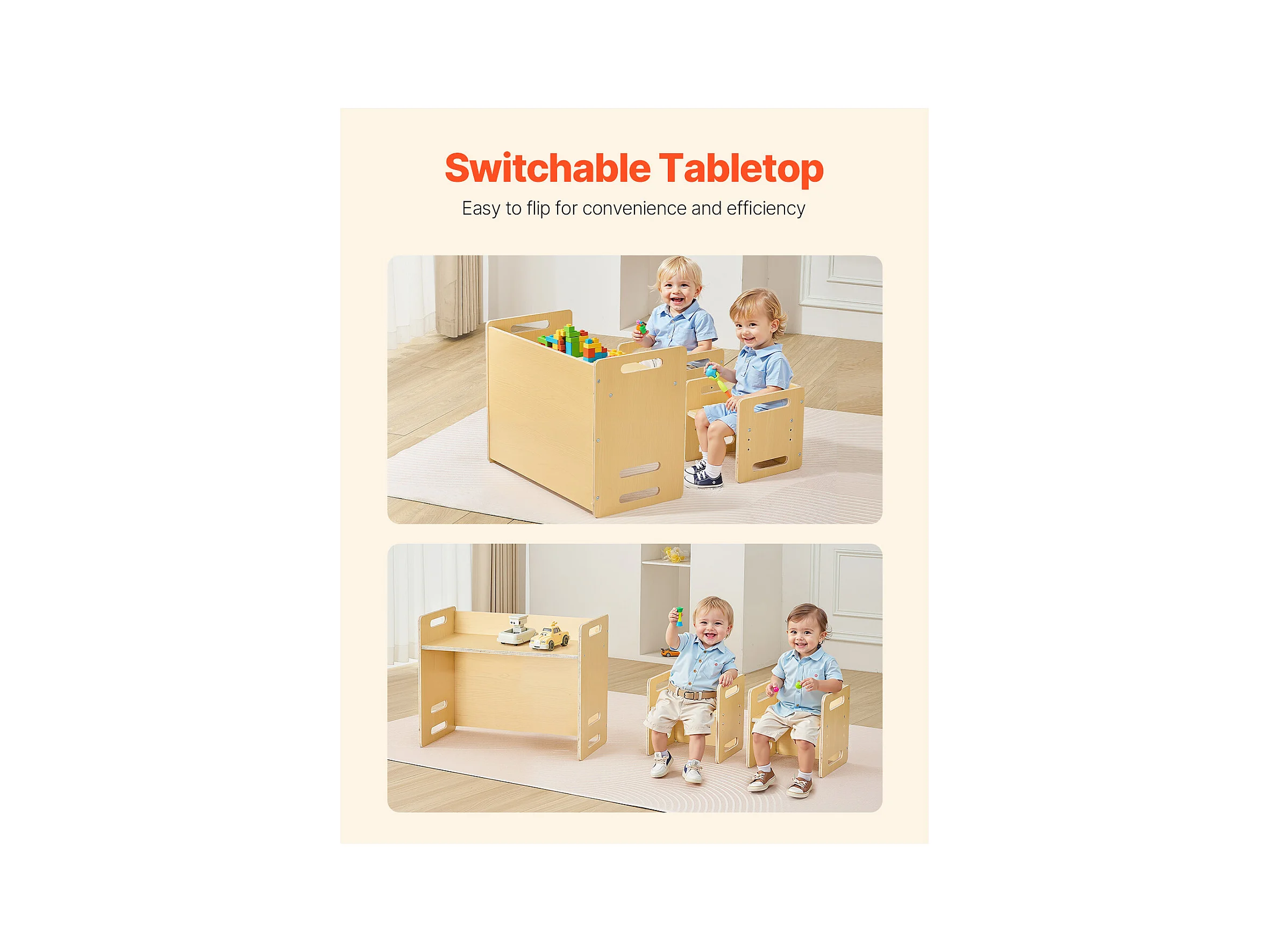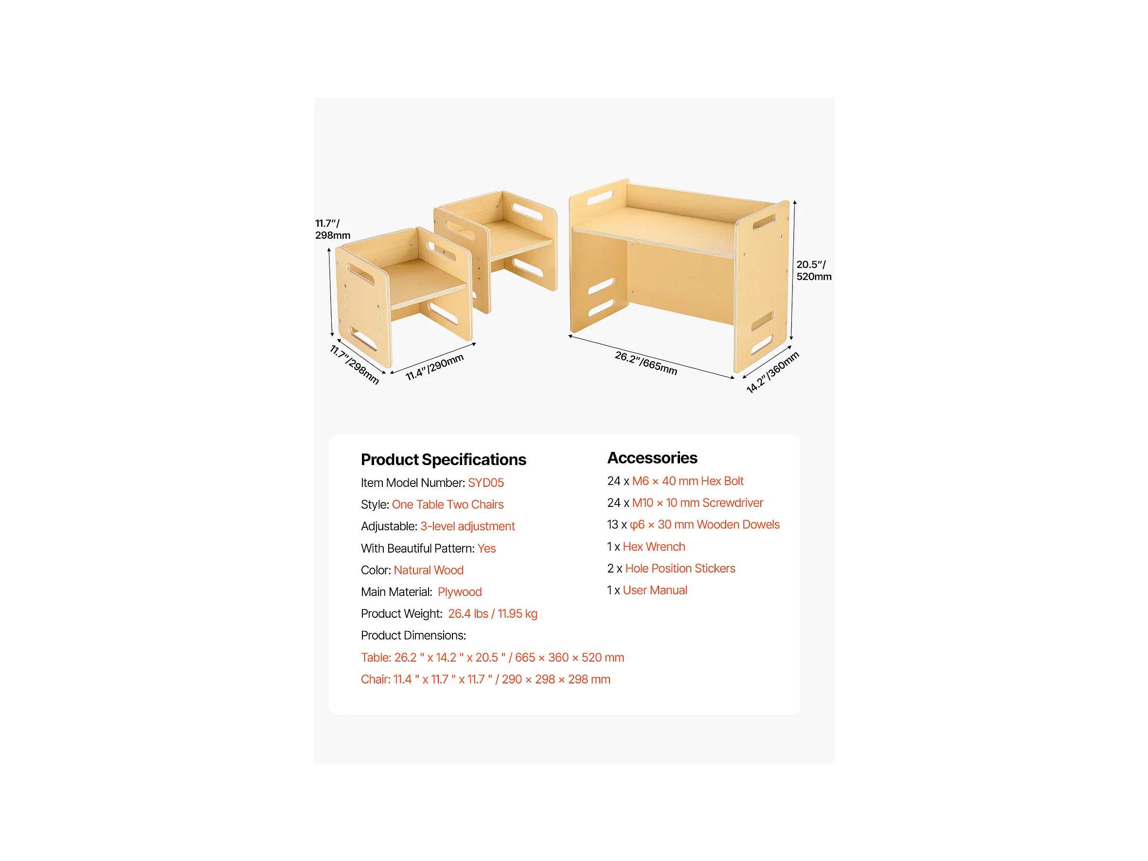 Set Tavolo e Sedie per lo Svezzo Montessori SucceBuy, Scrivania in Legno per Bambini con 2 Sedie