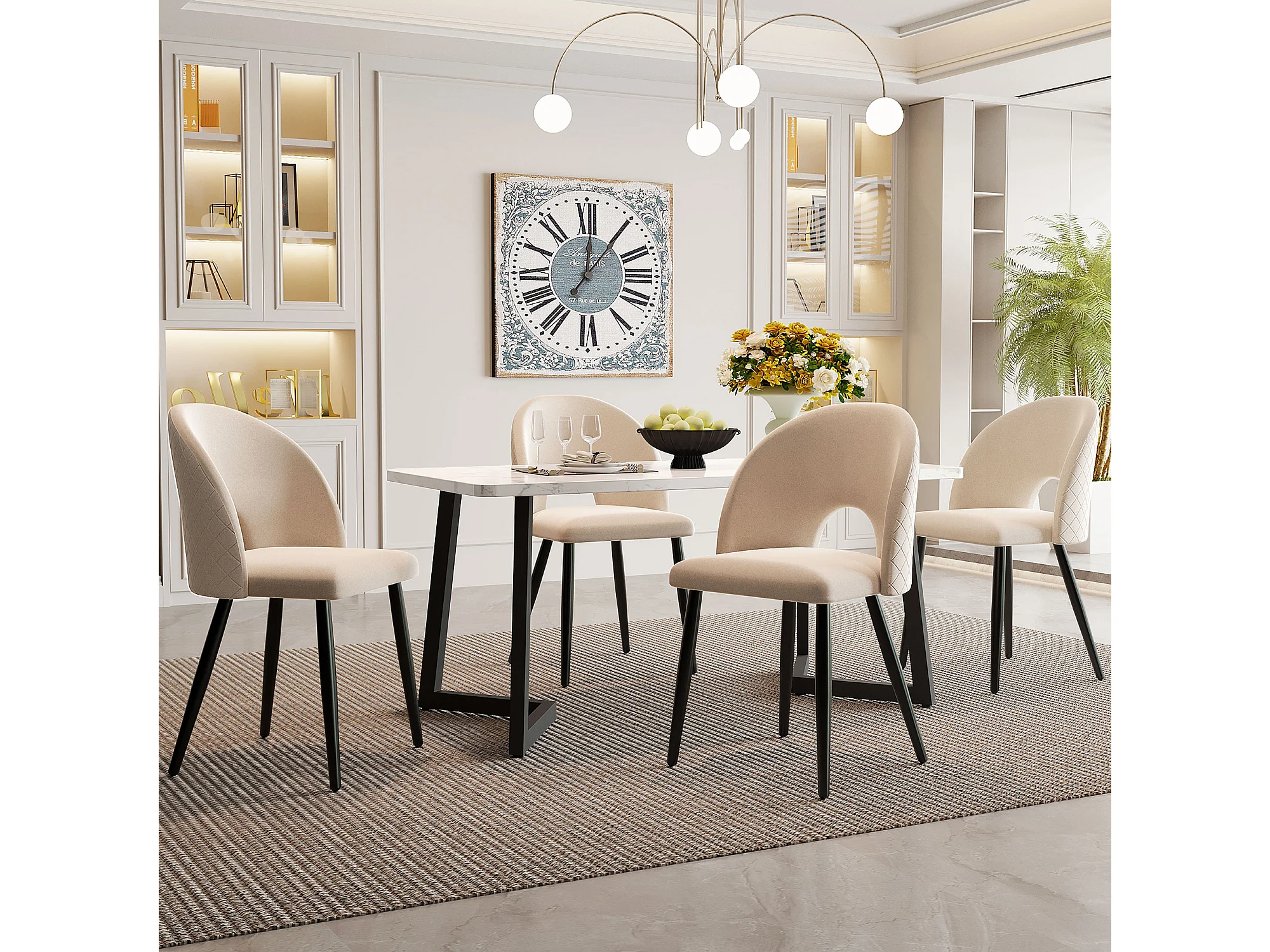 Set tavolo e sedie da pranzo - gambe in metallo - 1 tavolo da pranzo rettangolare + 4 sedie in velluto beige
