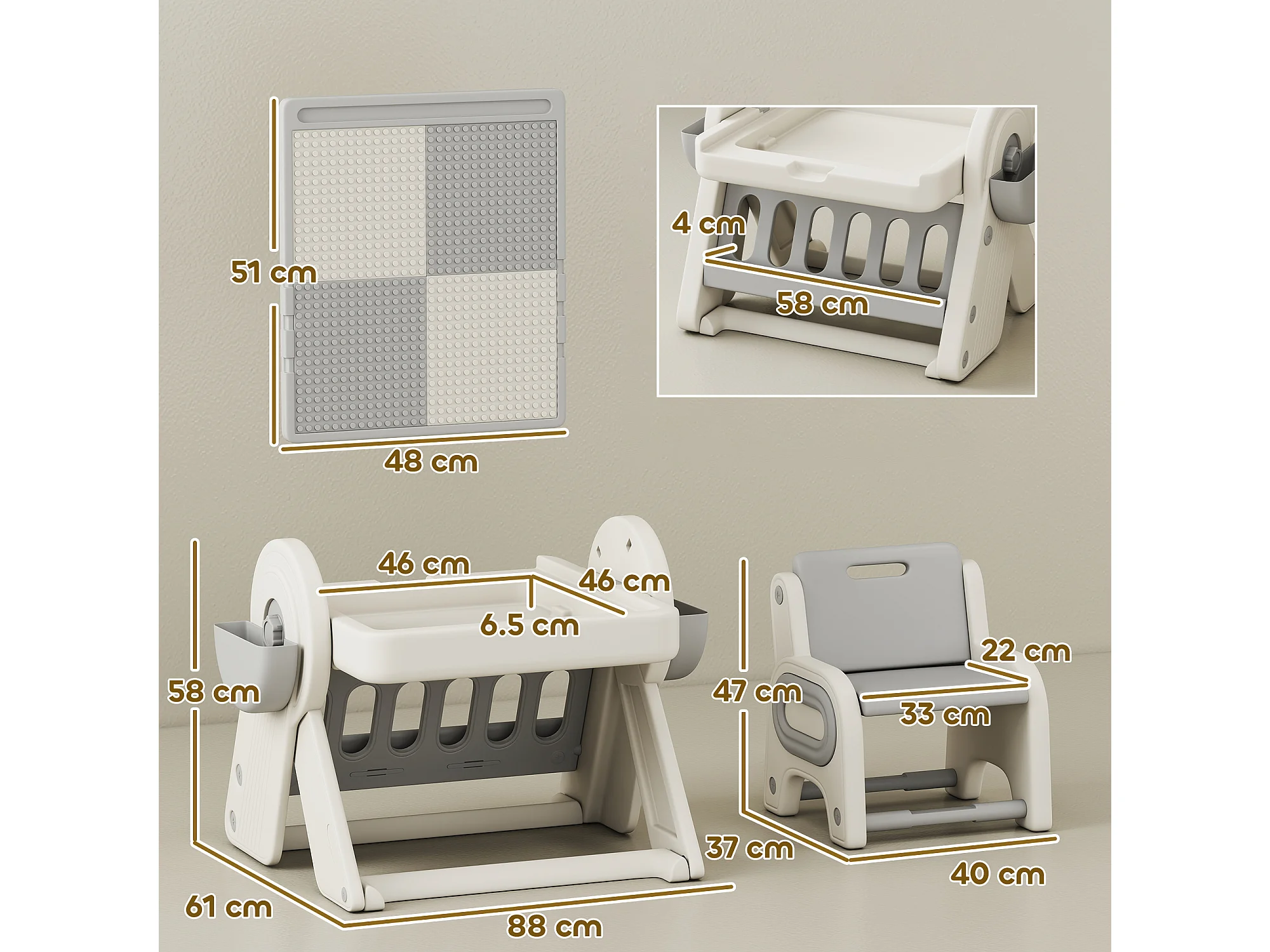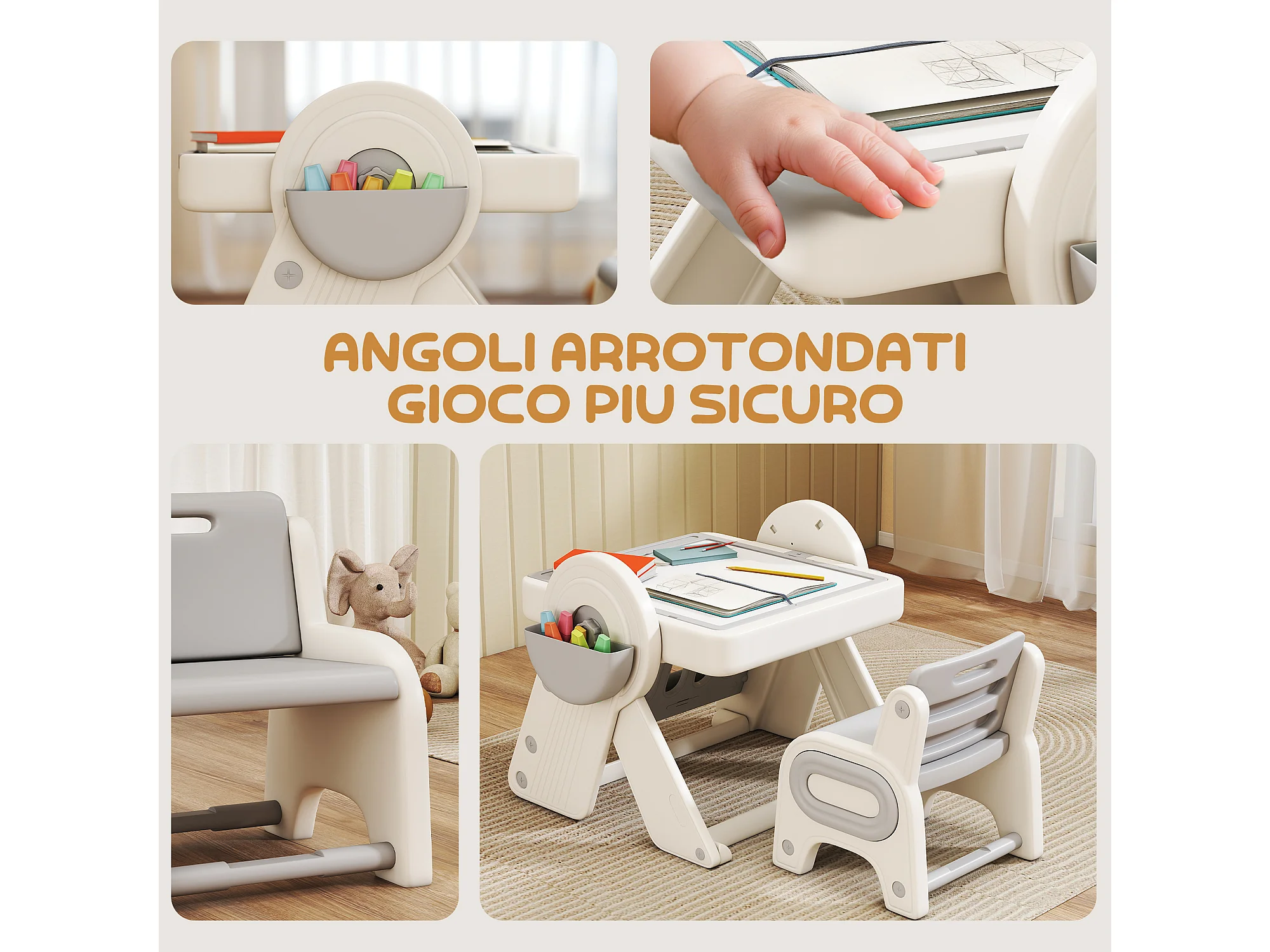 Set tavolo multiuso per bambini con sedia in hdpe e pp grigio e bianco