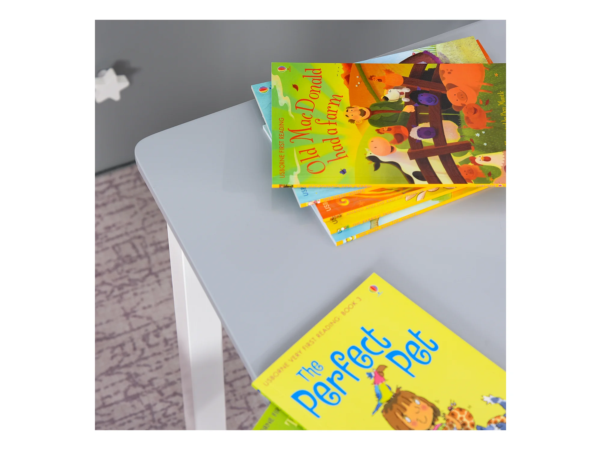 Set tavolo e 2 sedie per bambini 3-8 anni con disegni grigio