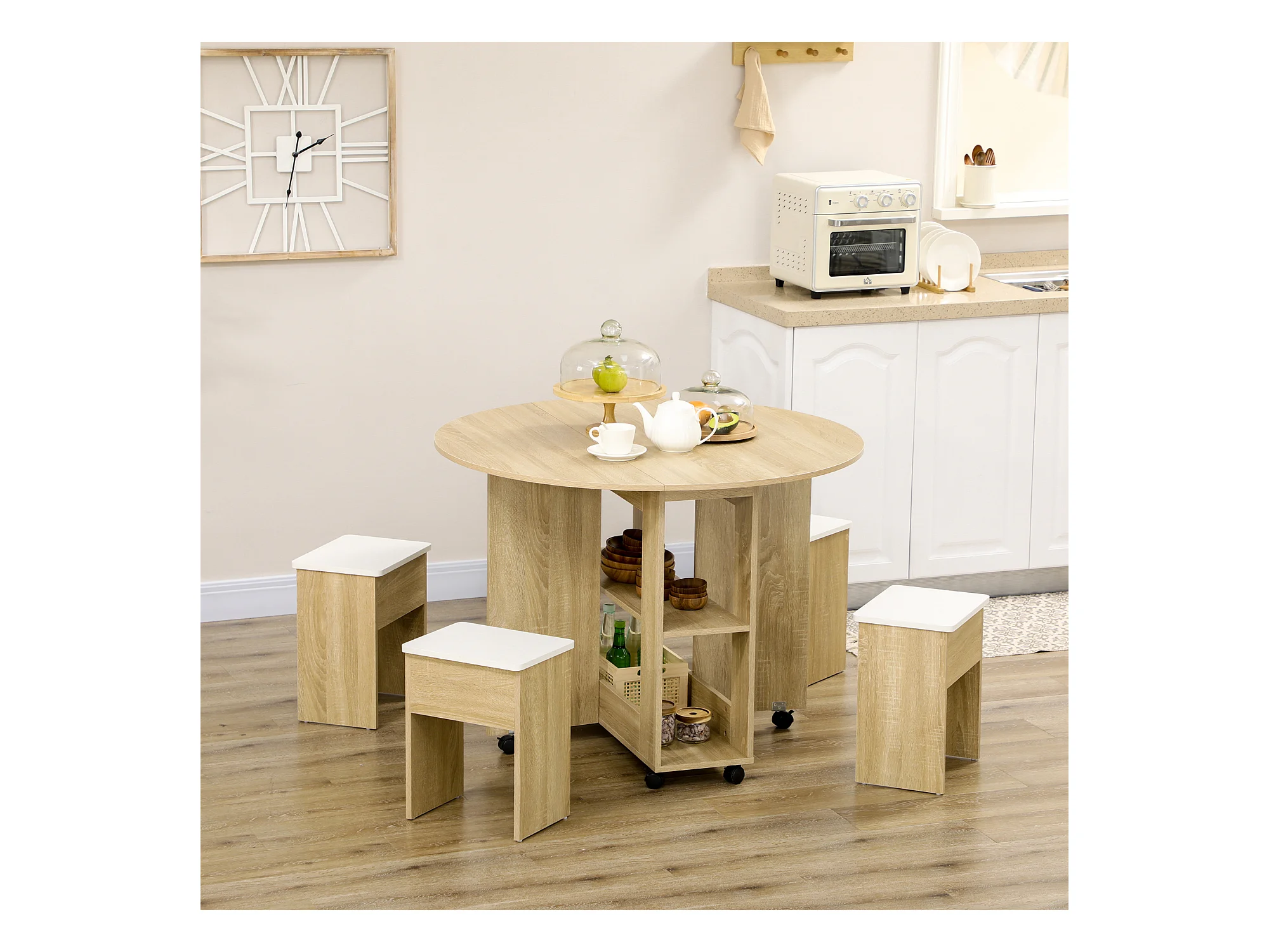 Set tavolo rotondo e sedie 5 pezzi in truciolato color rovere