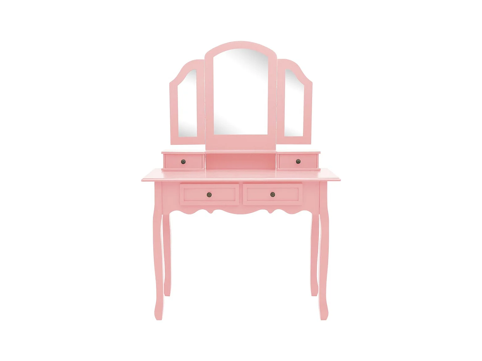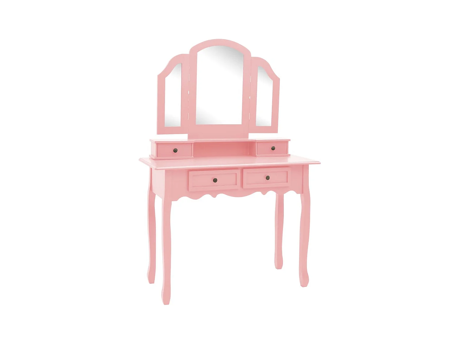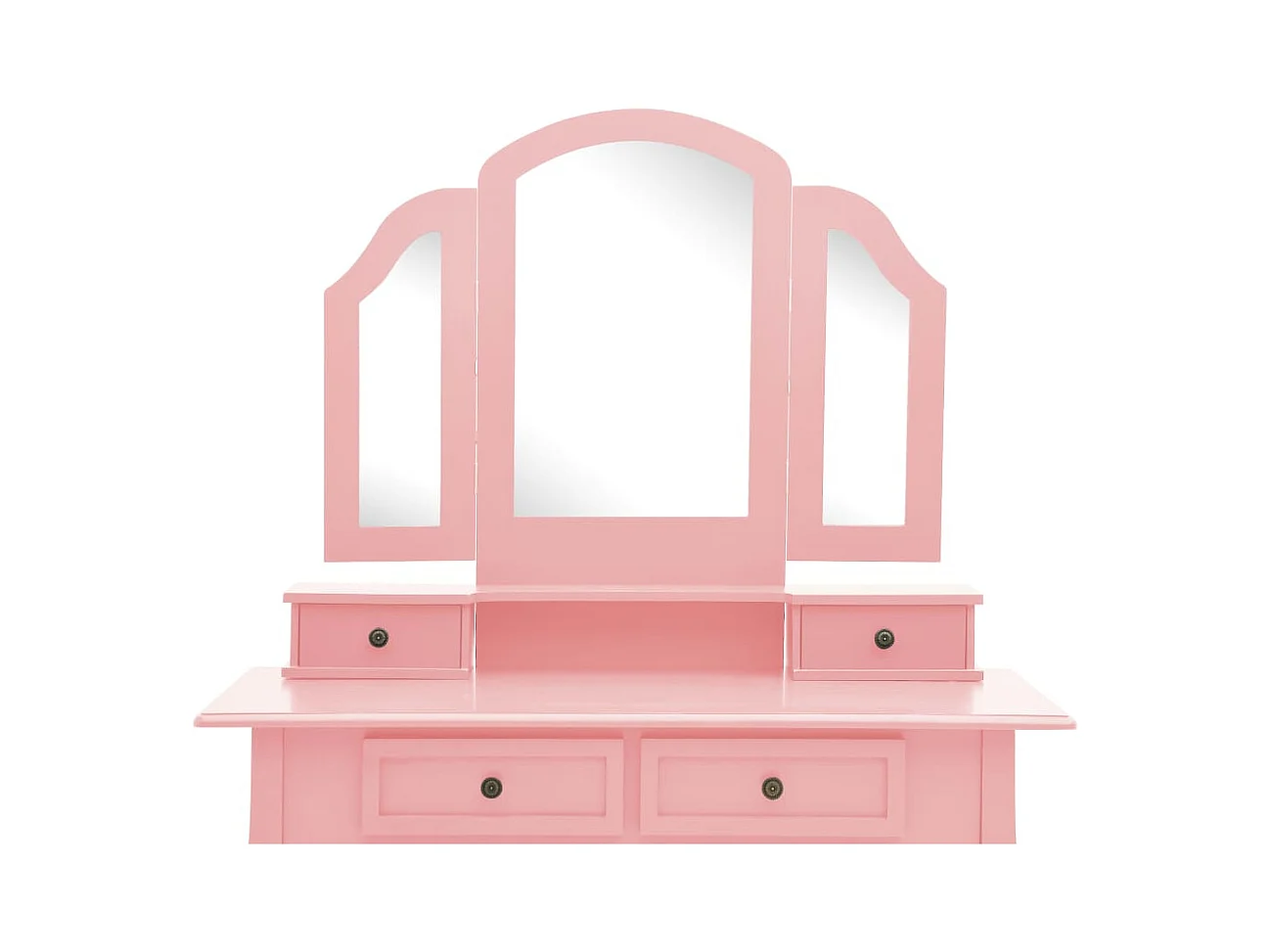 Toletta con sgabello e specchio a 3 pieghe Rosa