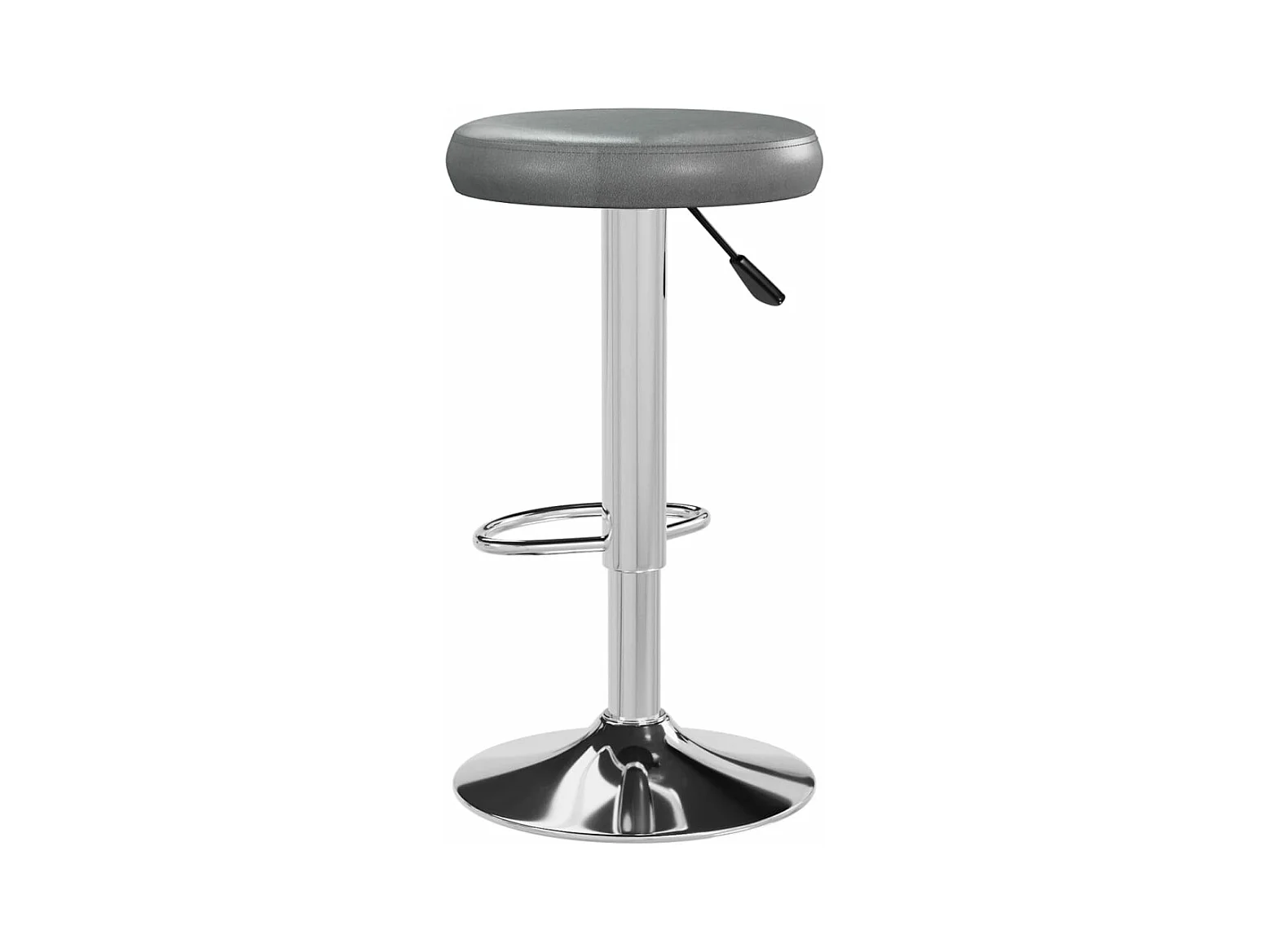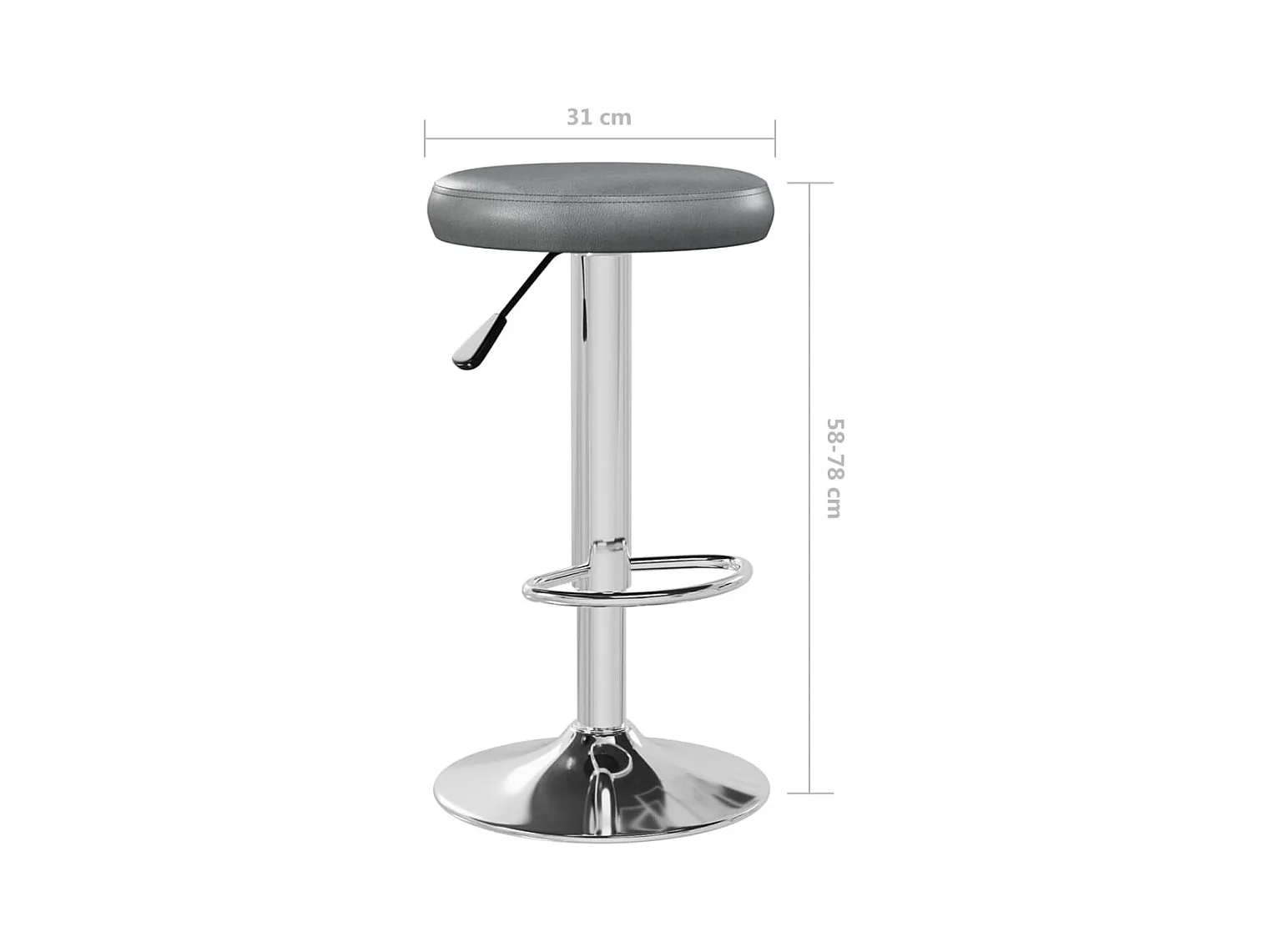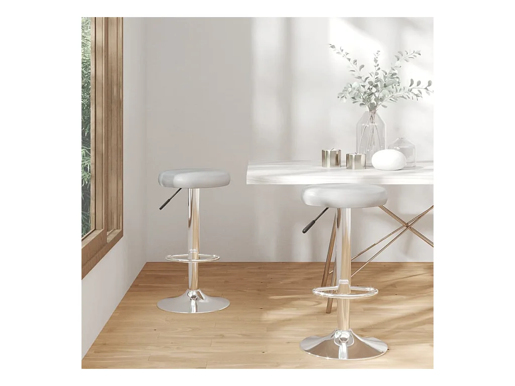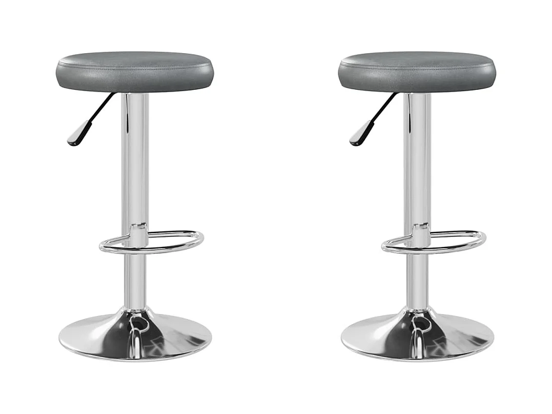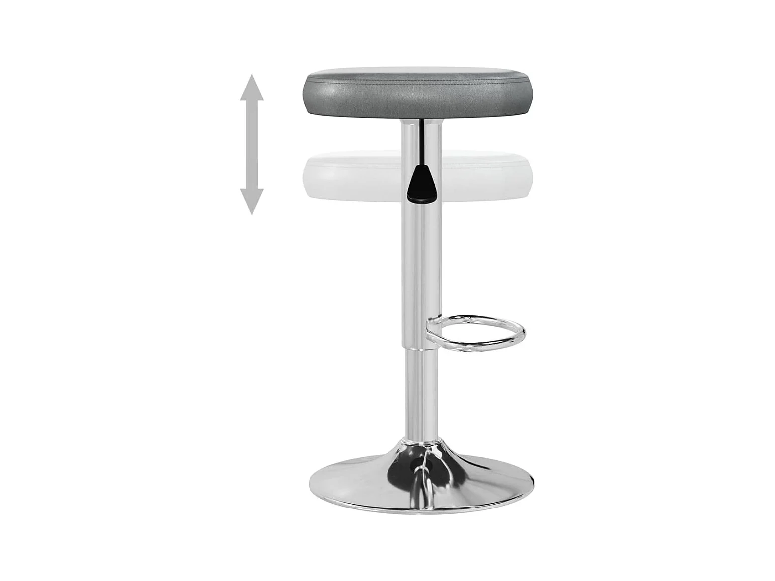 Set di 2 sgabelli da bar regolabili in altezza 77-97 cm - Seduta in similpelle PU grigia, piede in metallo grigio, diametro 40 cm