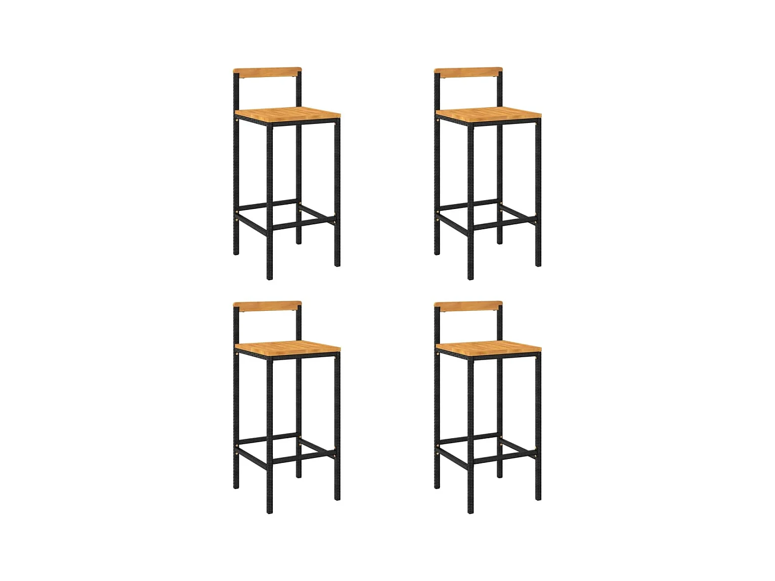 Sgabelli da Bar 4pz Neri Polyrattan e Legno Massello di Acacia
