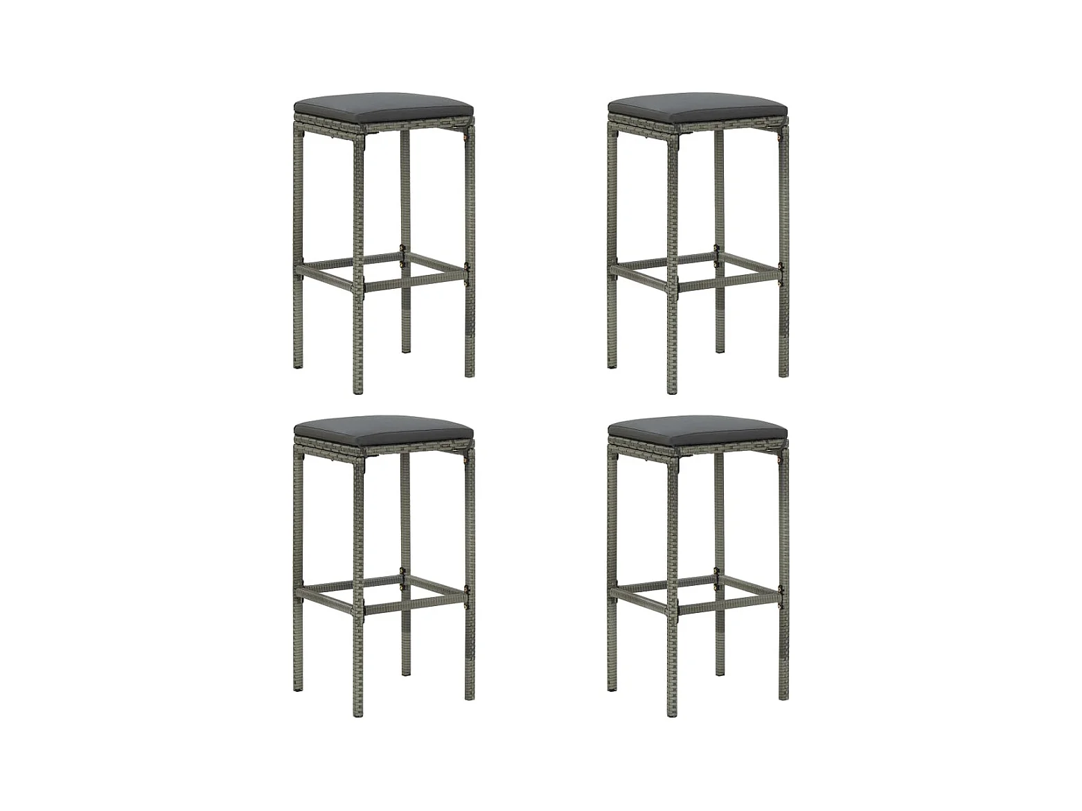 Sgabelli da bar con cuscini set di 4 in resina intrecciata grigia