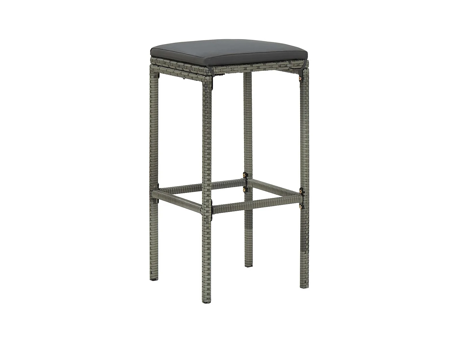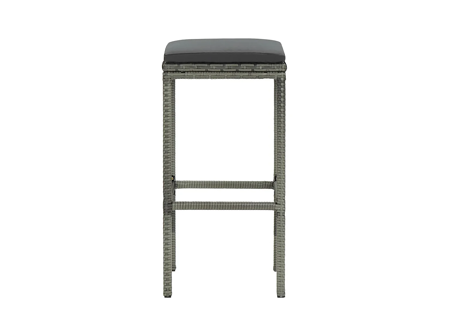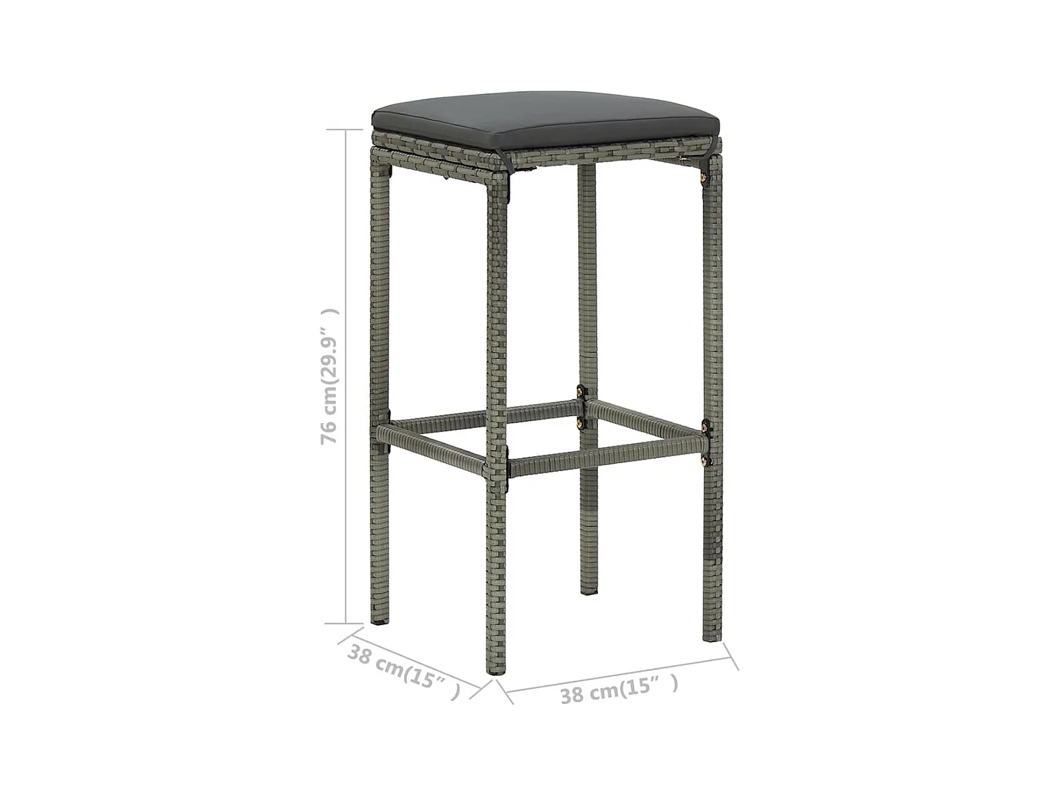 Sgabelli da bar con cuscini, set da 3, grigio, resina intrecciata