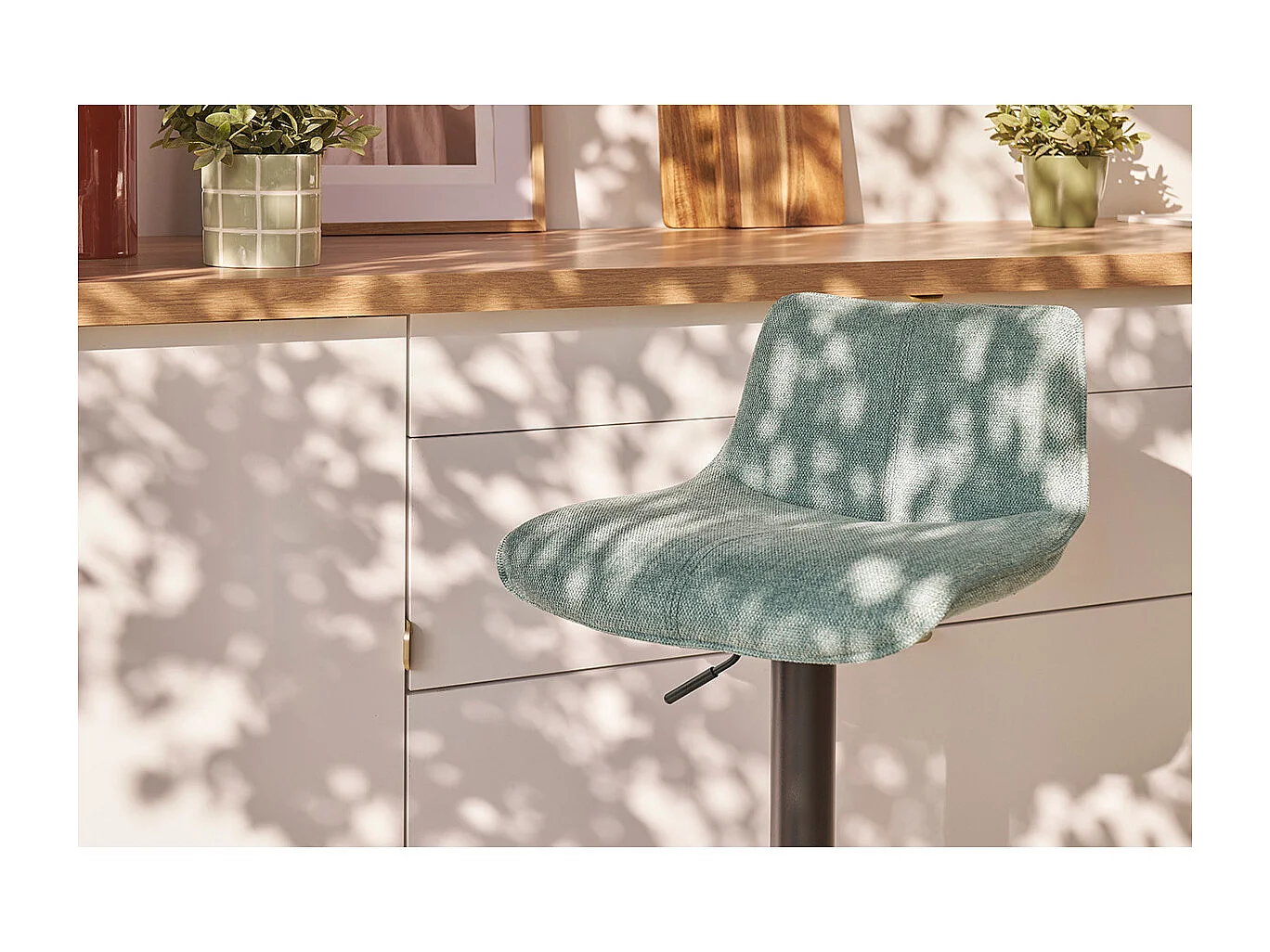 Sgabelli da bar regolabili in tessuto effetto velluto testurizzato verde acquamarina e metallo (set di 2) BOOST