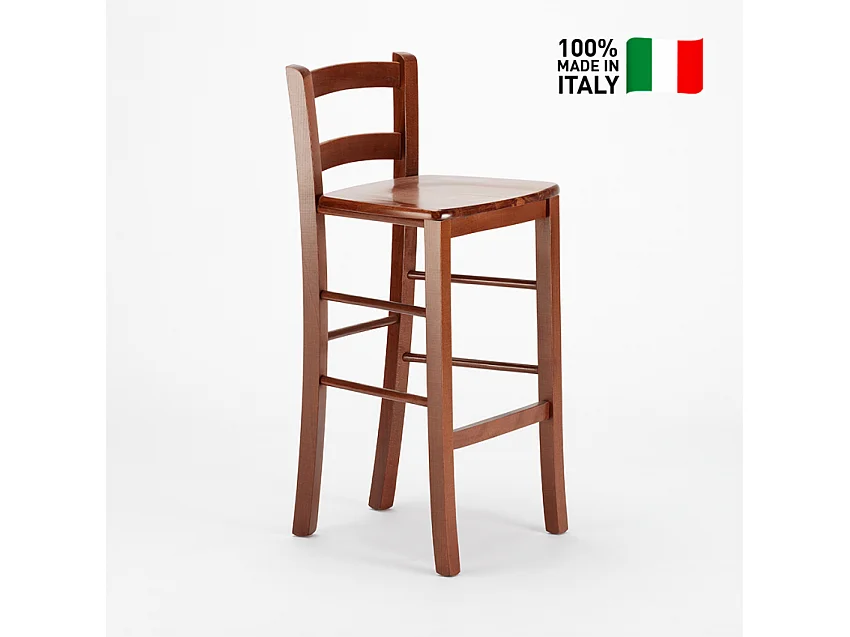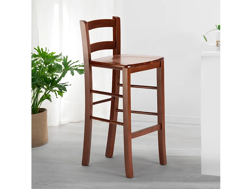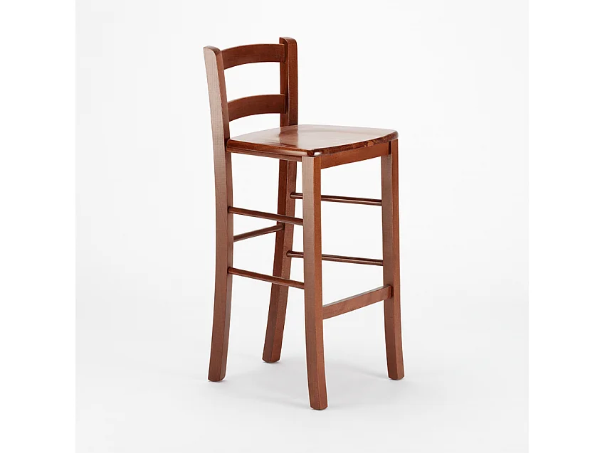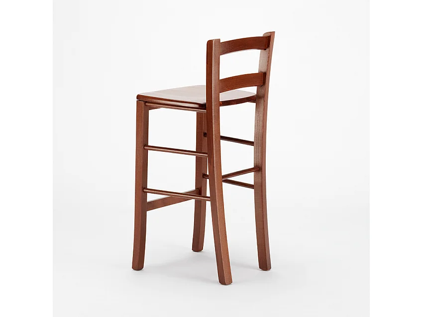 Sgabello alto in legno con schienale Munich per bar pub e cucina