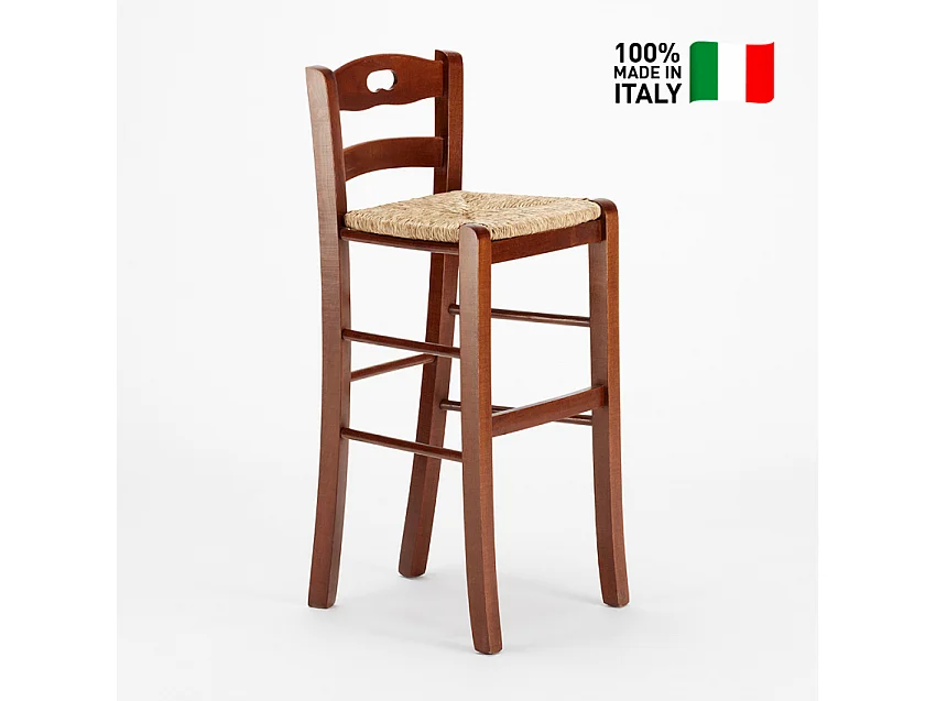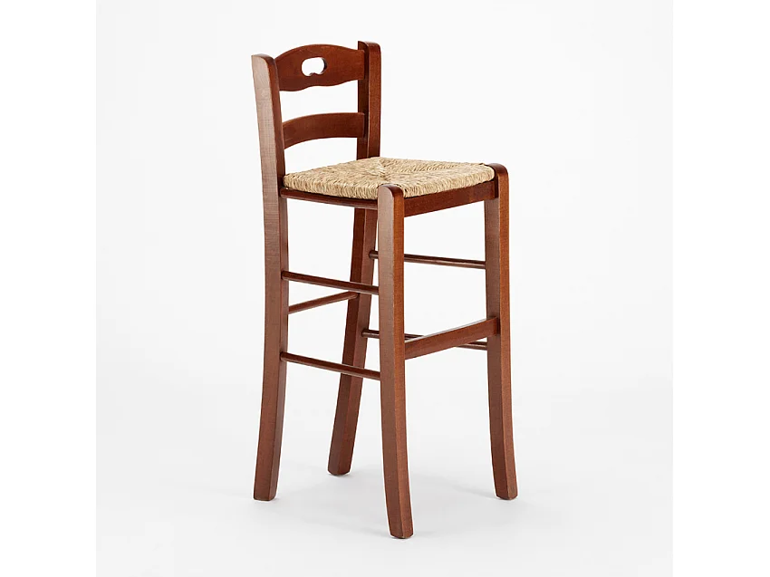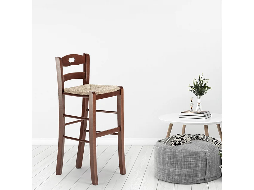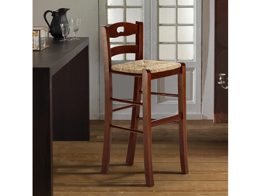 Sgabello alto in legno con seduta in paglia Hamburg bar pub e cucina