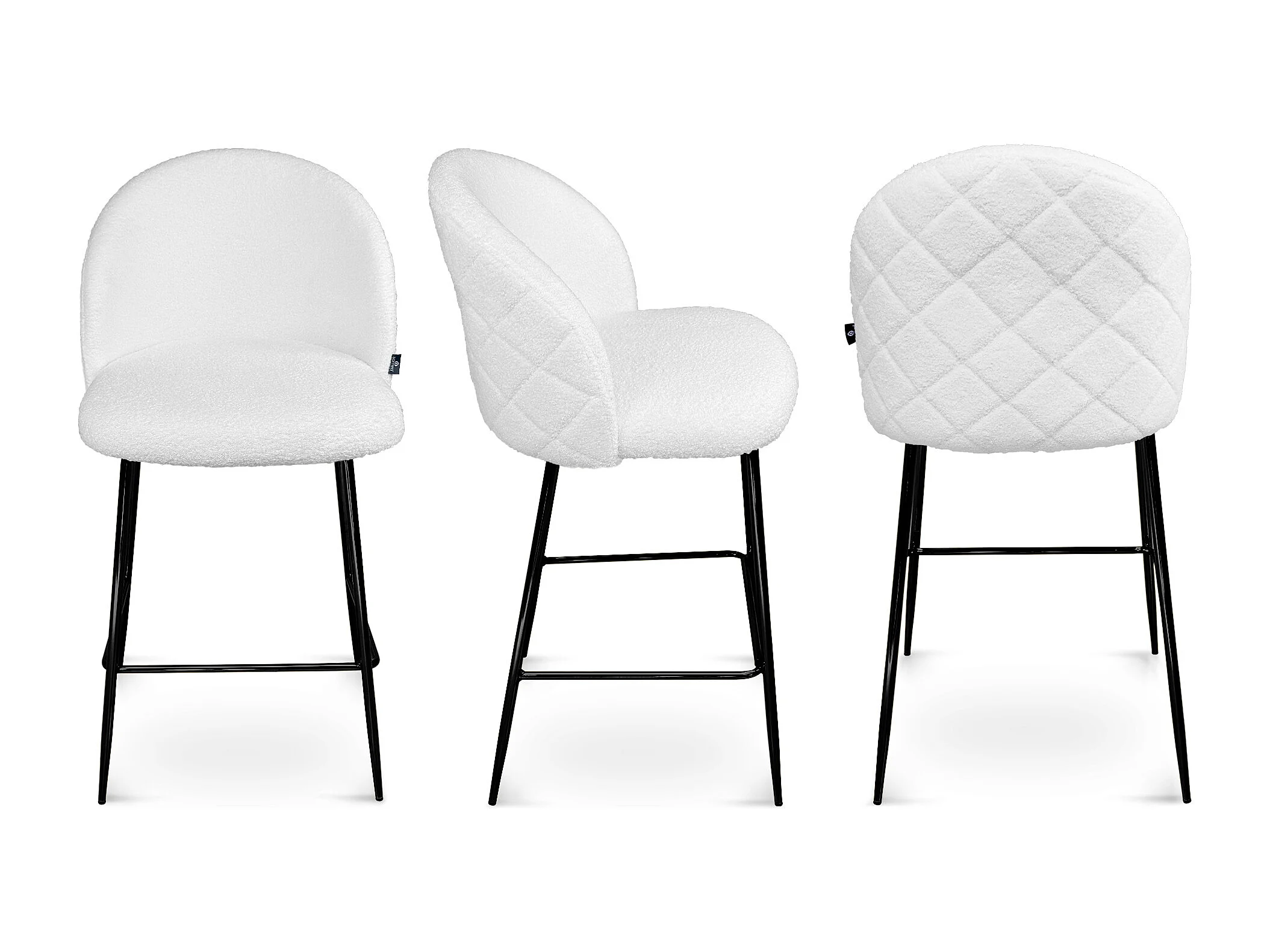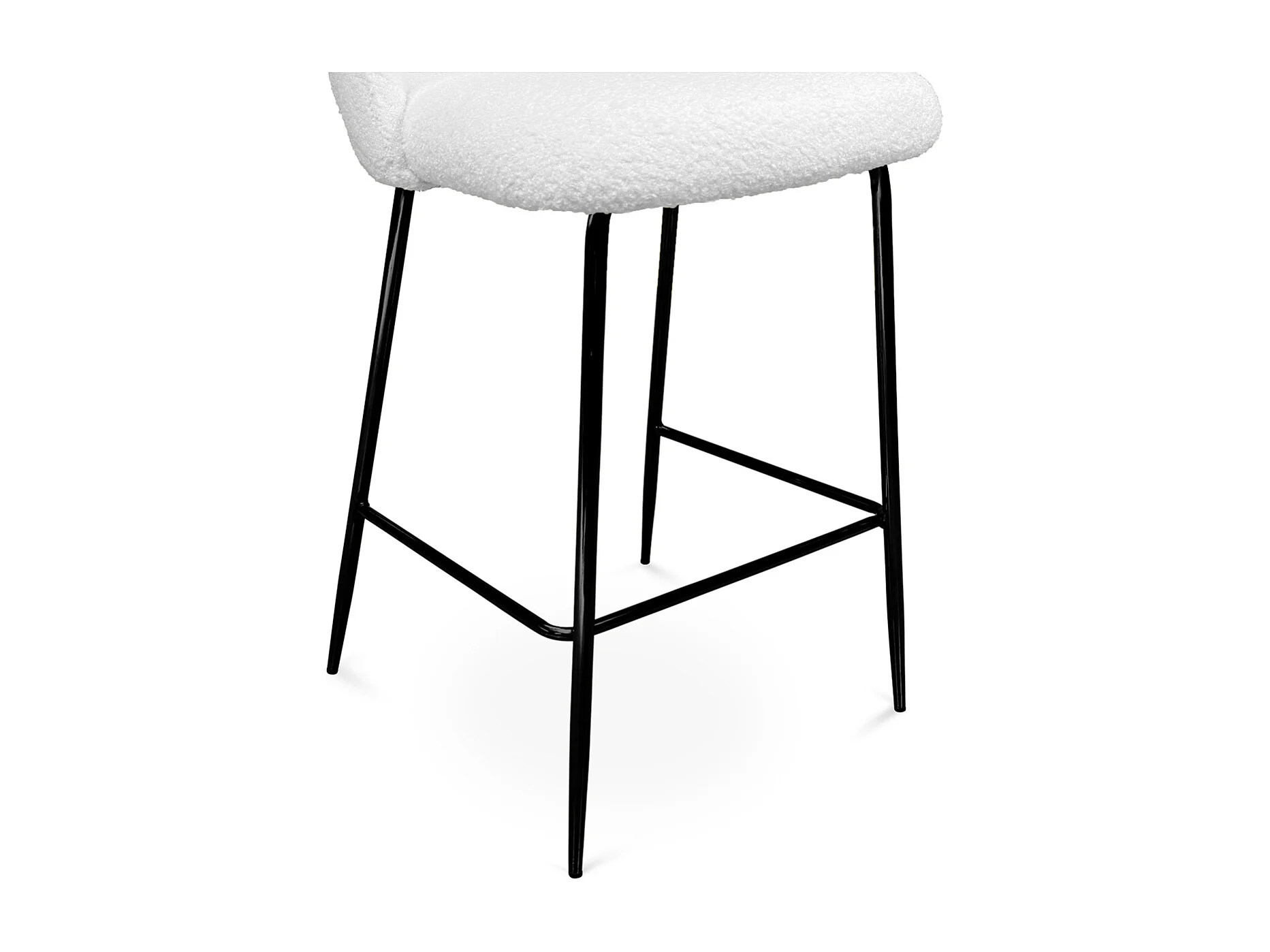 Sgabello cucina imbottito, sgabello alto in tessuto bouclè bianco piede nero – Nicole