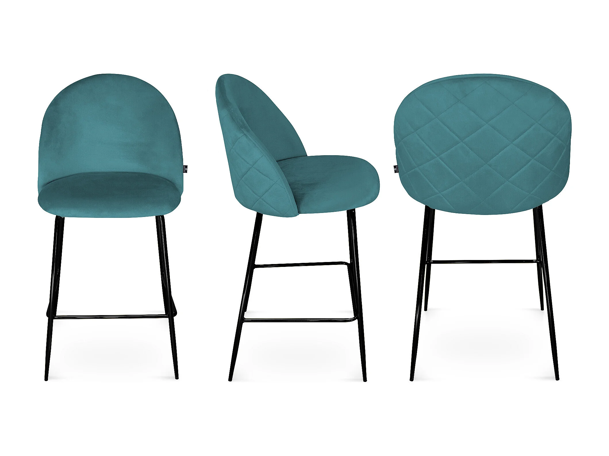 Sgabello cucina imbottito, sgabello alto in velluto verde petrolio piede nero – Nicole